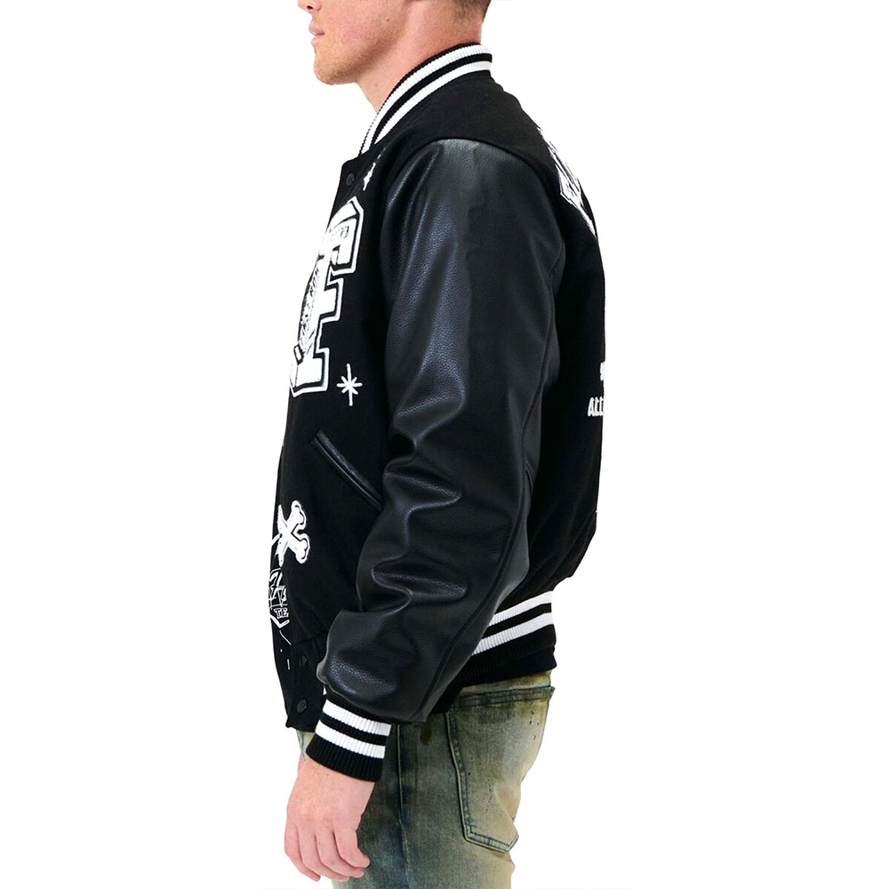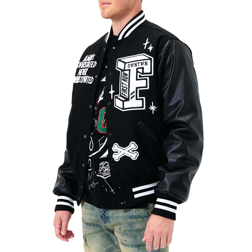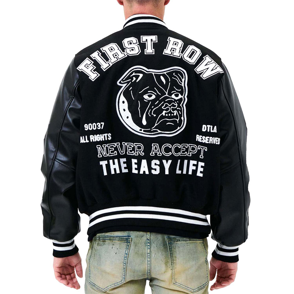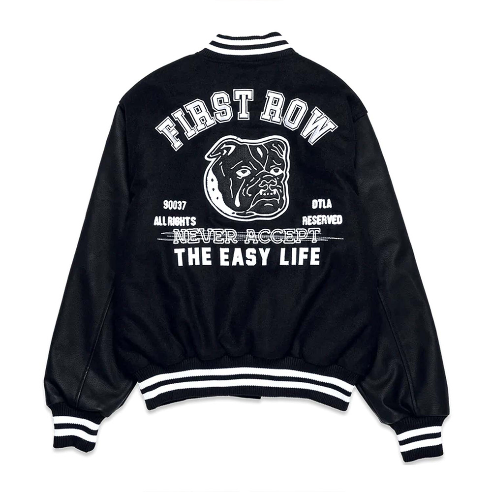 First Row Bulldog Full-Snap Black Varsity Wool/Leather Jacket