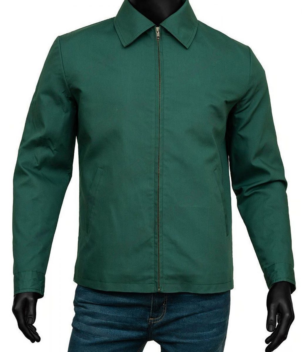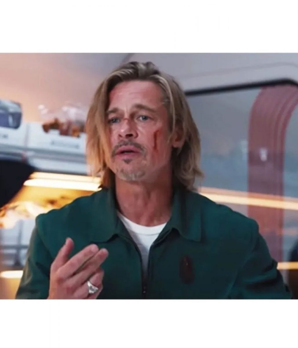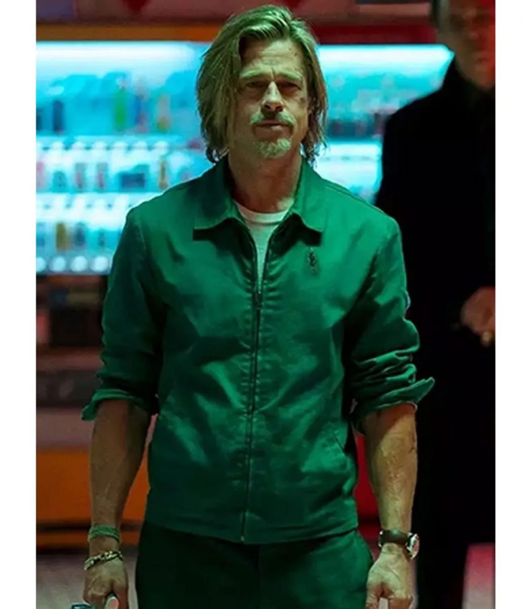 The Bullet Train Brad Pitt Jacket is a premium cotton outerwear piece inspired by Brad Pitt’s stylish look as Ladybug in the action-packed film Bullet Train. Crafted from high-quality cotton fabric, this green jacket delivers both comfort and timeless style. Featuring a shirt-style collar, branded YKK zipper front closure, and rib-knitted cuffs, this jacket is perfect for fans who want to recreate the laid-back yet sharp look of Brad Pitt in the movie.