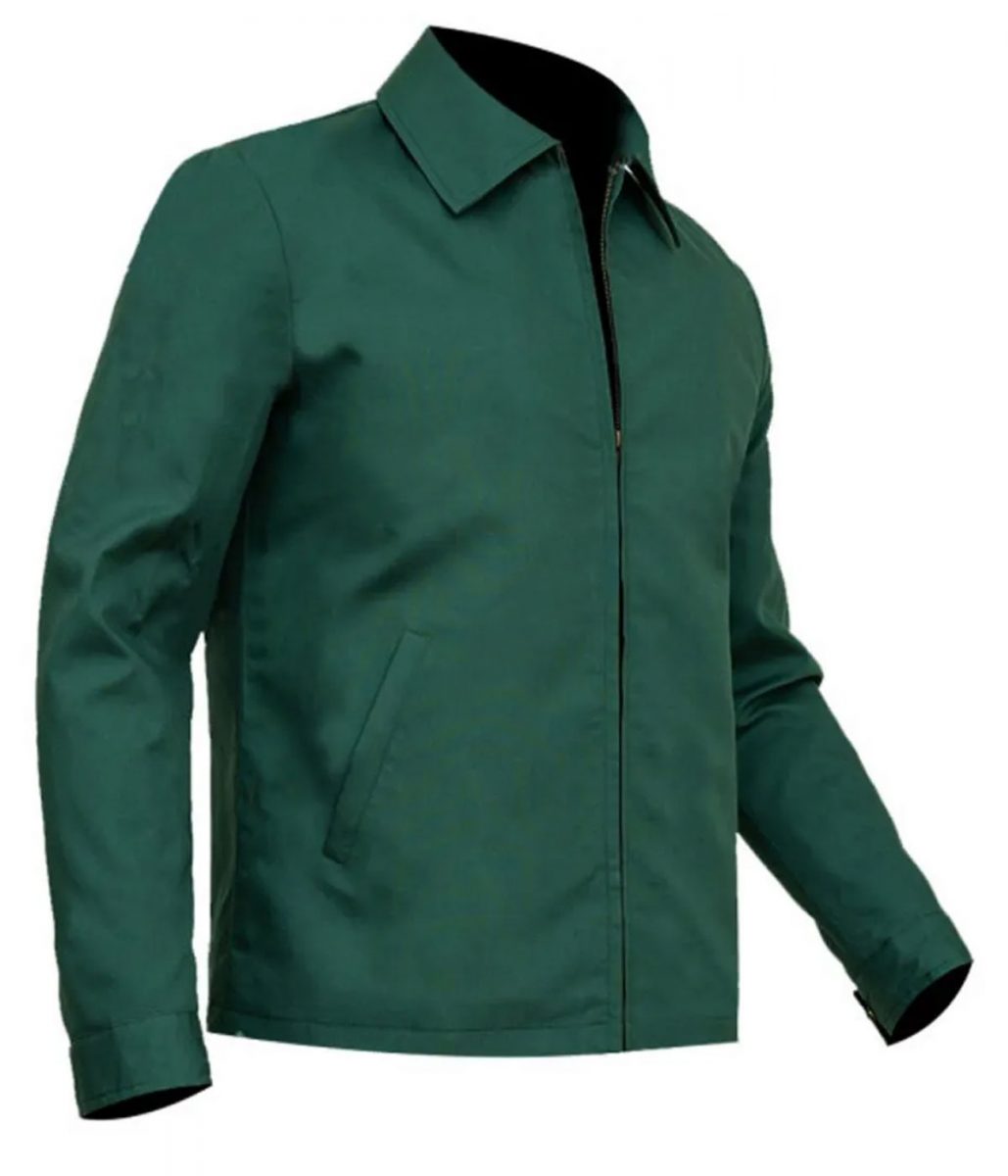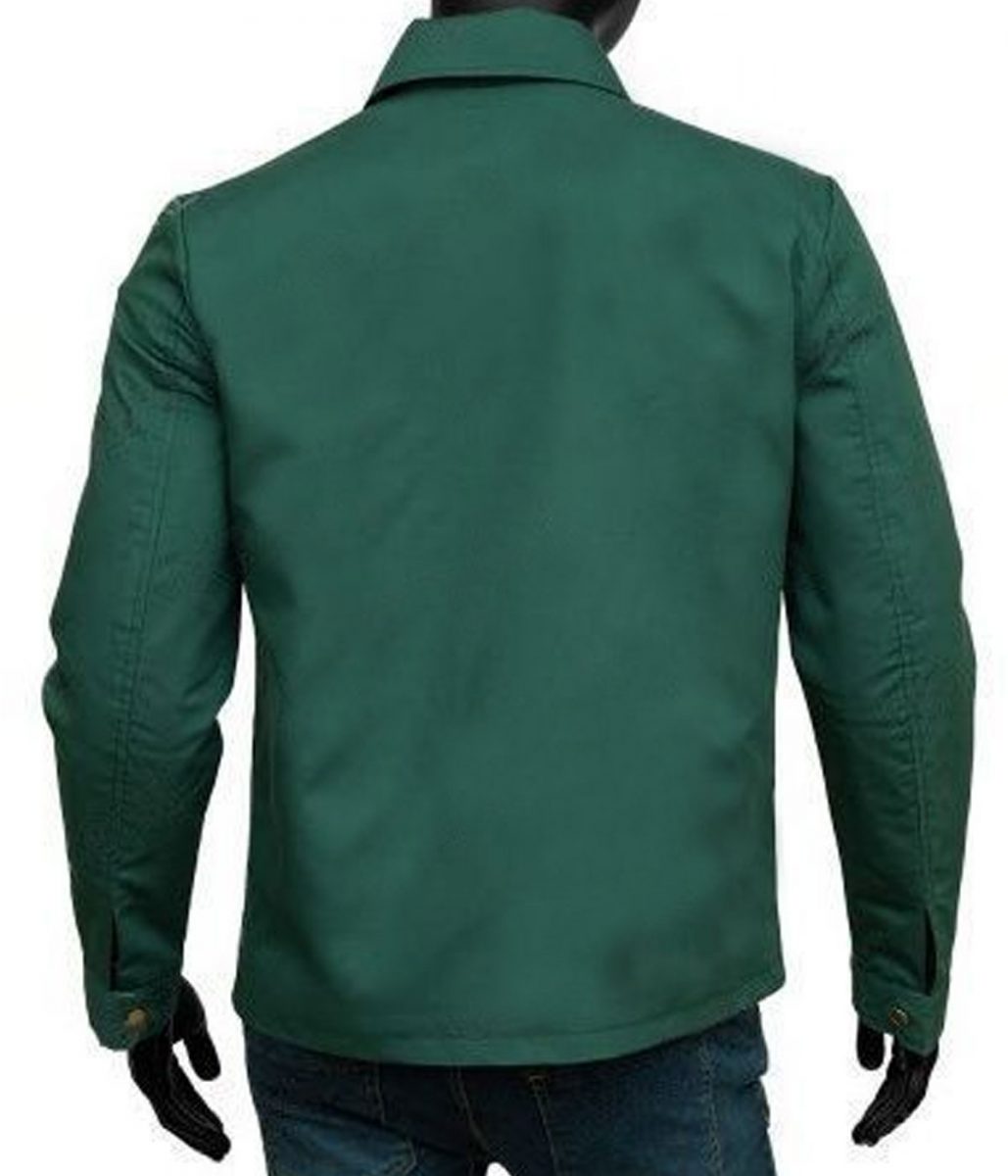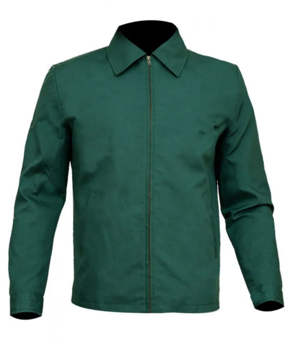 The Bullet Train Brad Pitt Jacket is a premium cotton outerwear piece inspired by Brad Pitt’s stylish look as Ladybug in the action-packed film Bullet Train. Crafted from high-quality cotton fabric, this green jacket delivers both comfort and timeless style. Featuring a shirt-style collar, branded YKK zipper front closure, and rib-knitted cuffs, this jacket is perfect for fans who want to recreate the laid-back yet sharp look of Brad Pitt in the movie.