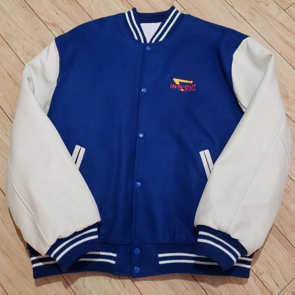 Burger In N Out Letterman Varsity Blue and White Jacket