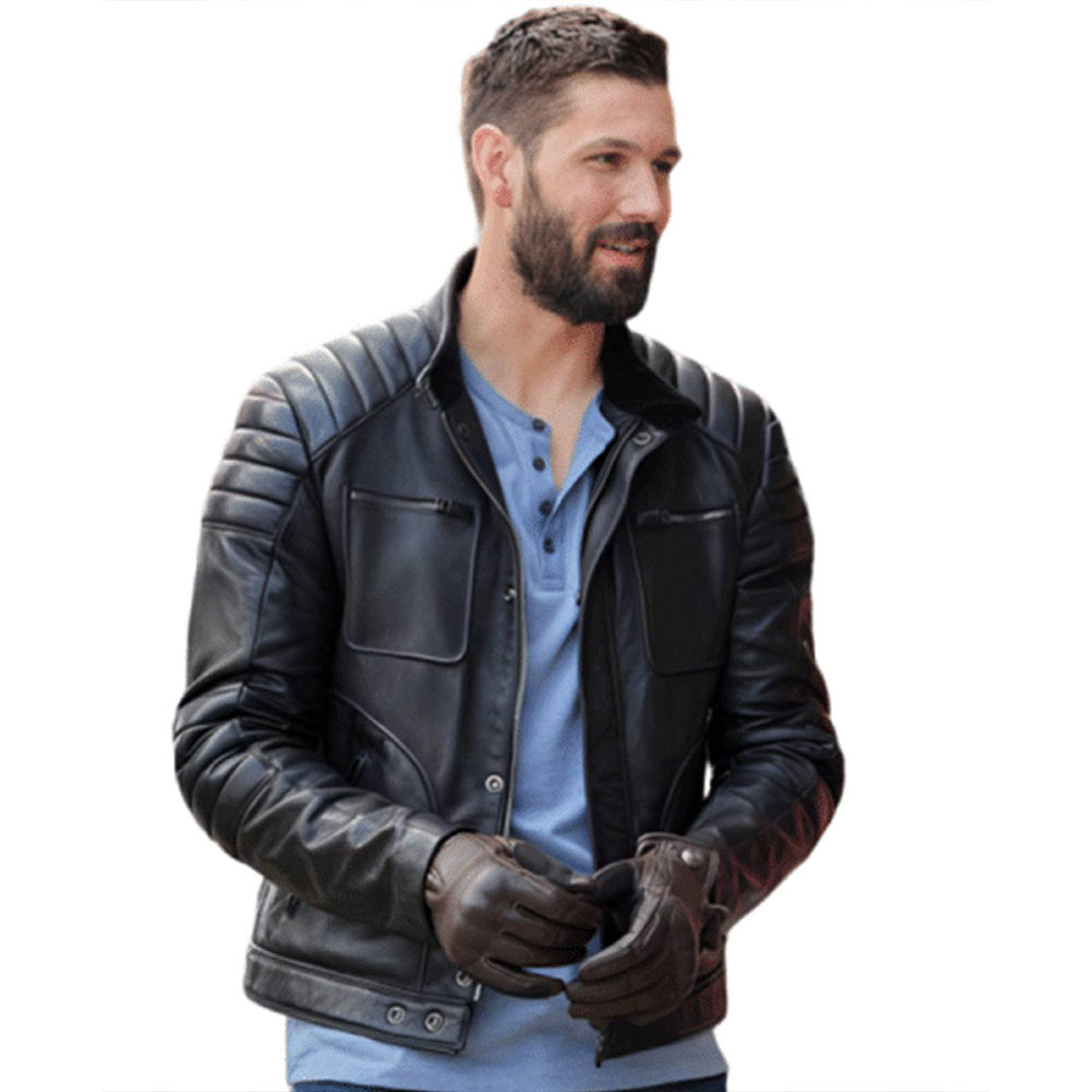 Unleash your fashion prowess with the Wedding Season Ryan Leather jacket, skillfully crafted from premium quality genuine leather. Its mesmerizing black color exudes innovation and boldness, creating an eye-catching look. This Casey Deidrick Wedding Season Leather jacket features a shearling stand up style collar and a branded YKK zipper front closure for a touch of style and convenience. The soft viscose inner lining ensures warmth and relaxation, while the long sleeves with open hem cuffs add a sophisticated touch. With two inner and two side pockets, this Wedding Season Ryan Leather jacket offers practicality alongside comfort. The fine quality stitching ensures a comfortable and desirable fit, making it an ideal choice for any party