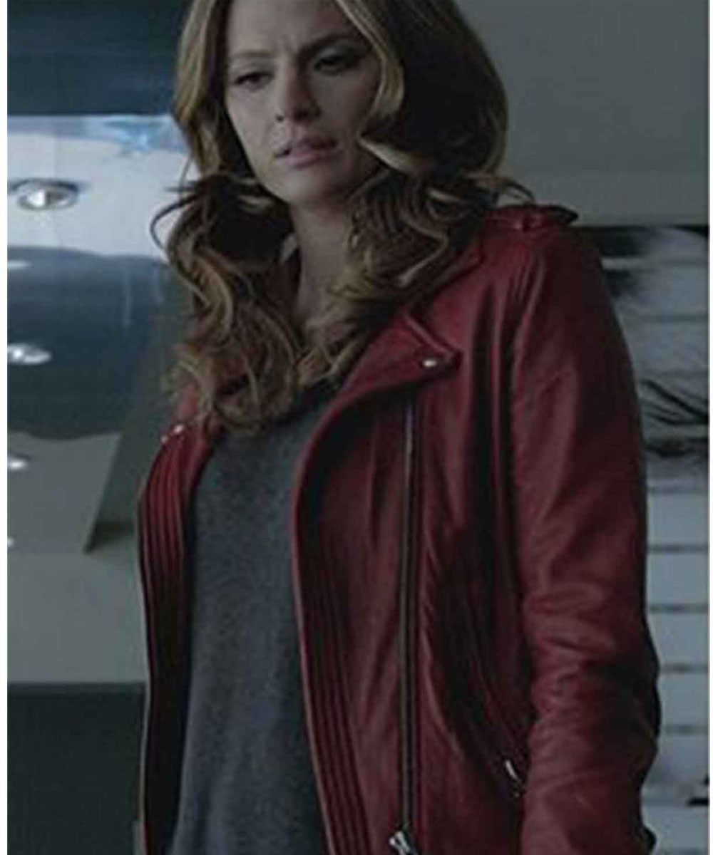 Castle Season 06 Kate Beckett Biker Red Leather Jacket