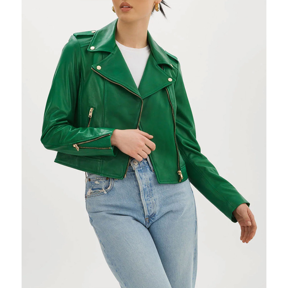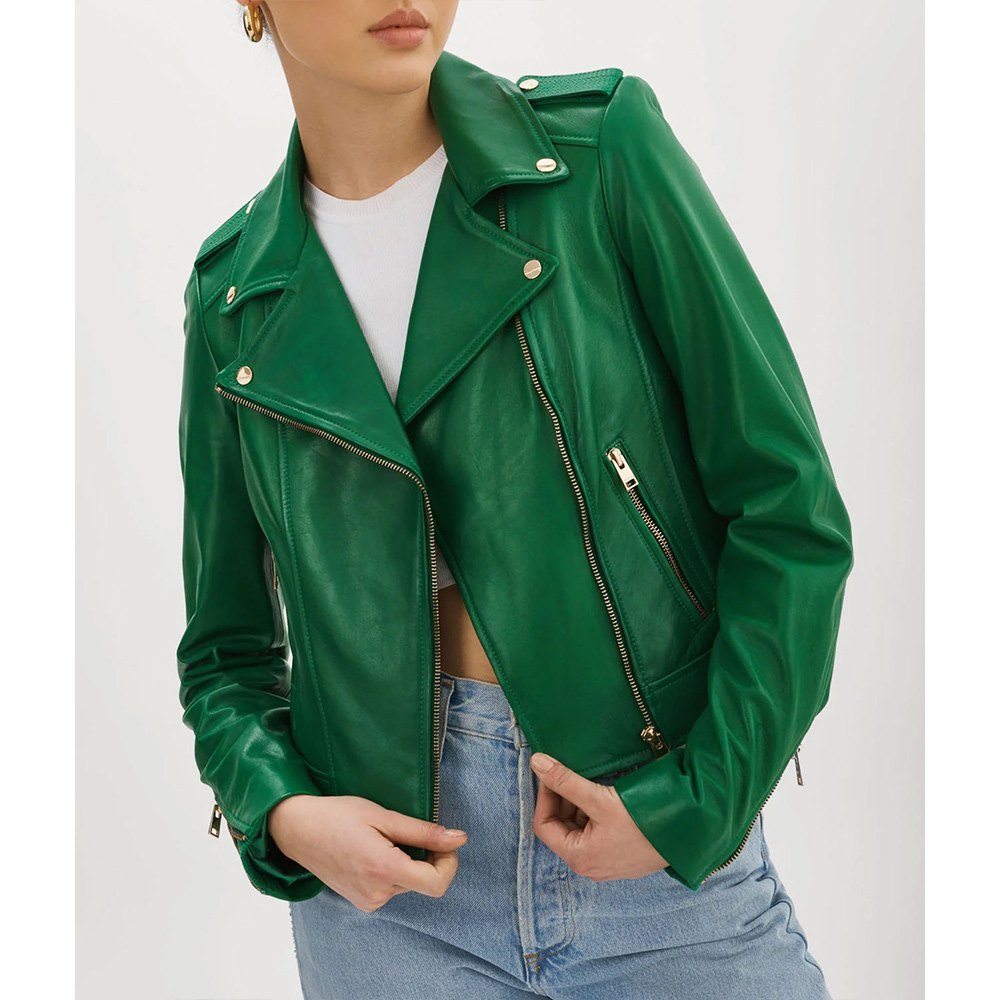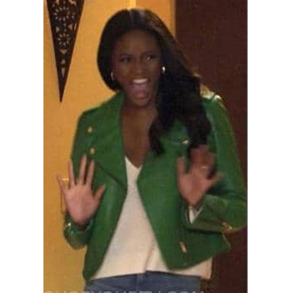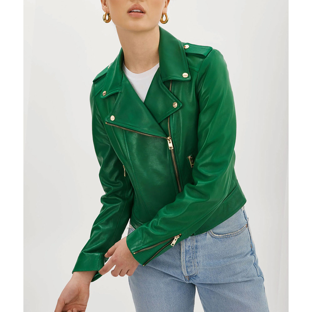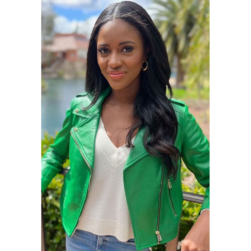 The Bachelorette S20 Charity Lawson Green Leather Biker Jacket