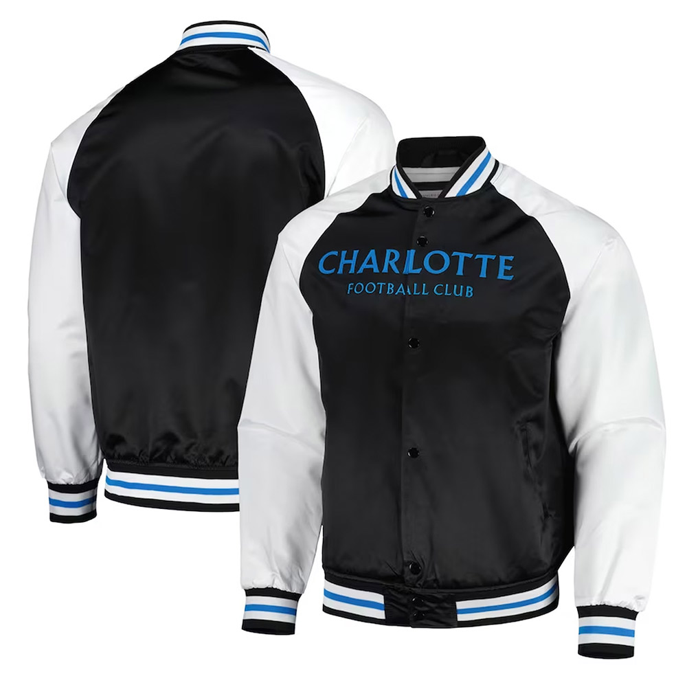 Charlotte FC Black and White Full-Snap Raglan Satin Jacket