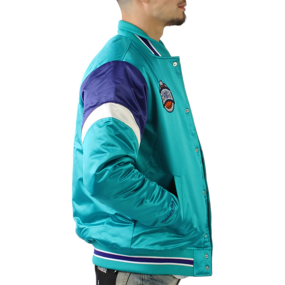 Express yourself in Hornets pride with the Aqua Satin NBA Charlotte Hornets Eastern Jacket. This dynamic outerwear is a vibrant ode to basketball passion, boasting an eye-catching aqua satin design adorned with distinctive Hornets insignia. Meticulously crafted for fans who crave the perfect fusion of style and team spirit, this charlotte hornets eastern aqua satin jacket effortlessly blends comfort with urban sophistication. Either you’re courtside or on city streets, the Aqua Satin Eastern Jacket is your definitive choice for showcasing Hornets allegiance in a distinctive and fashion-forward manner. Embrace the spirited essence of Charlotte’s basketball legacy with this must-have piece, transforming every moment into a stylish slam dunk of individuality and team pride.