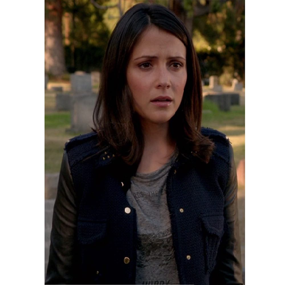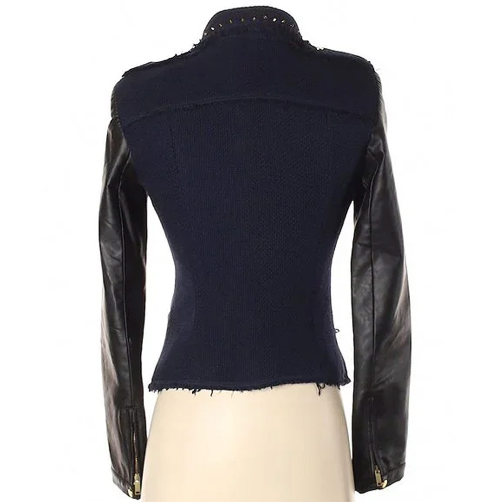 Navy and Black Chasing Life S01 April Carver Wool/Leather Jacket