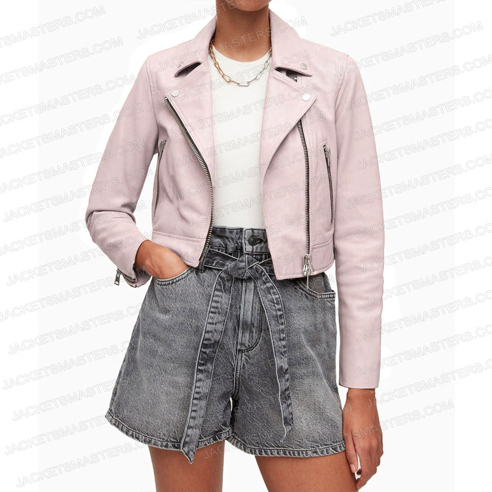 Chesapeake Shores Bree O’Brien Biker Cropped Pink Leather Jacket