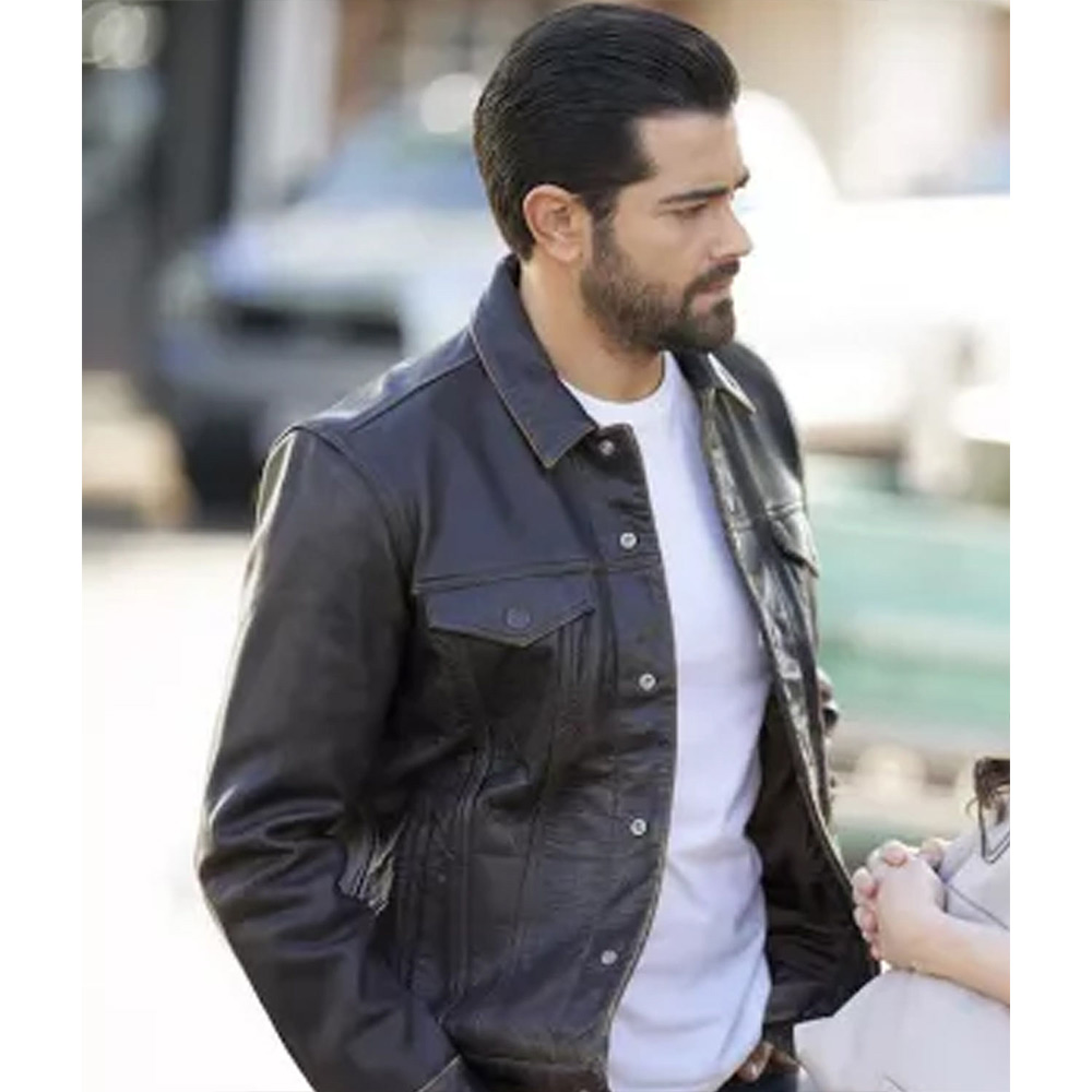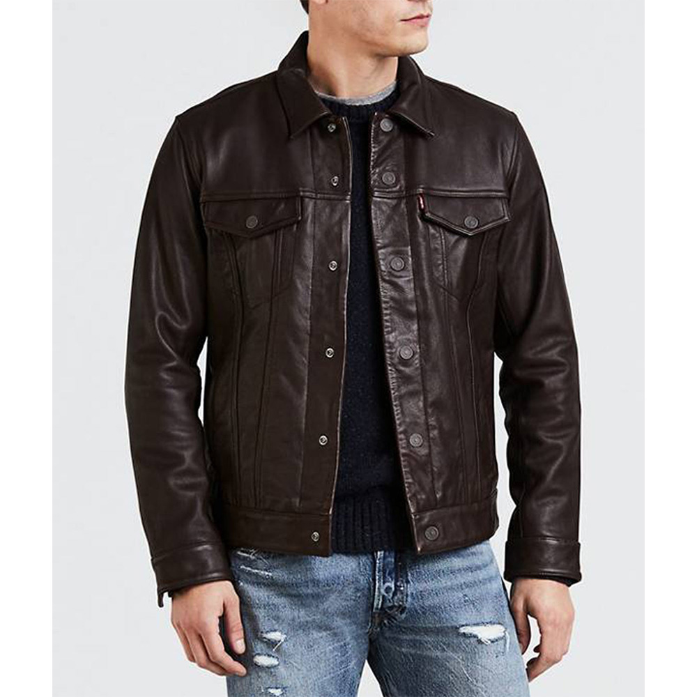 Jesse Metcalfe Chesapeake Shores S04 Trace Riley Black Leather Trucker Jacket