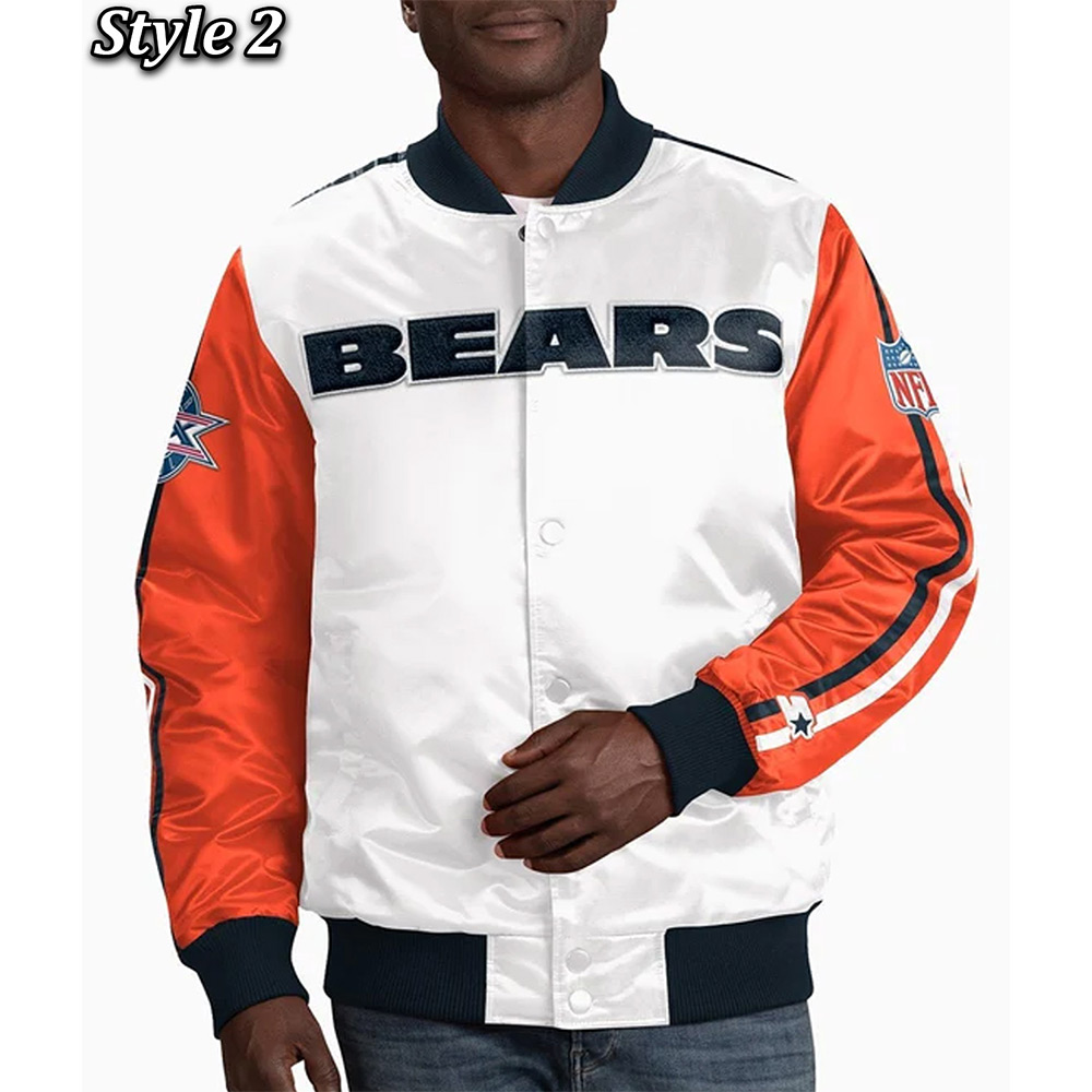 Encourage your game-day style with the Chicago Bears Striped Jacket. It’s a fusion of football spirit and urban chic with the satin fabric and ribbed features. Bears fans who redefine gameday fashion from the stadium to the streets, carry this masterpiece as its every stitch carries the essence of excitement. The Chicago Bears striped satin jacket is a symbol of team pride and urban style in every detail.