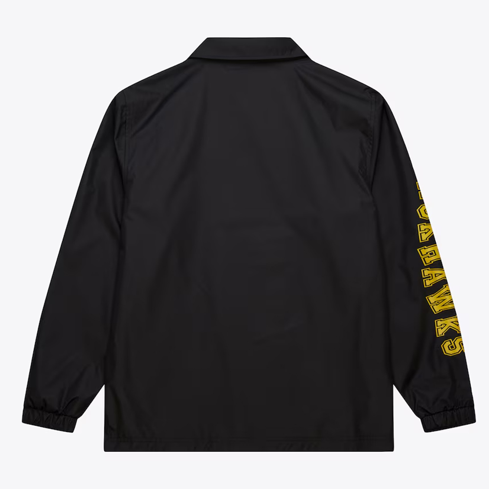 Lettering on the sleeves and flexible cuffs add even more to the Chicago Blackhawks Black Coaches jacket’s silhouette and flexibility when use. An elastic hemline remains it in place and has a comfortable fit. Function and design go hand in hand with two slanted waist pockets for the hands to warm or for storage of small items, and an inner pocket as well.
