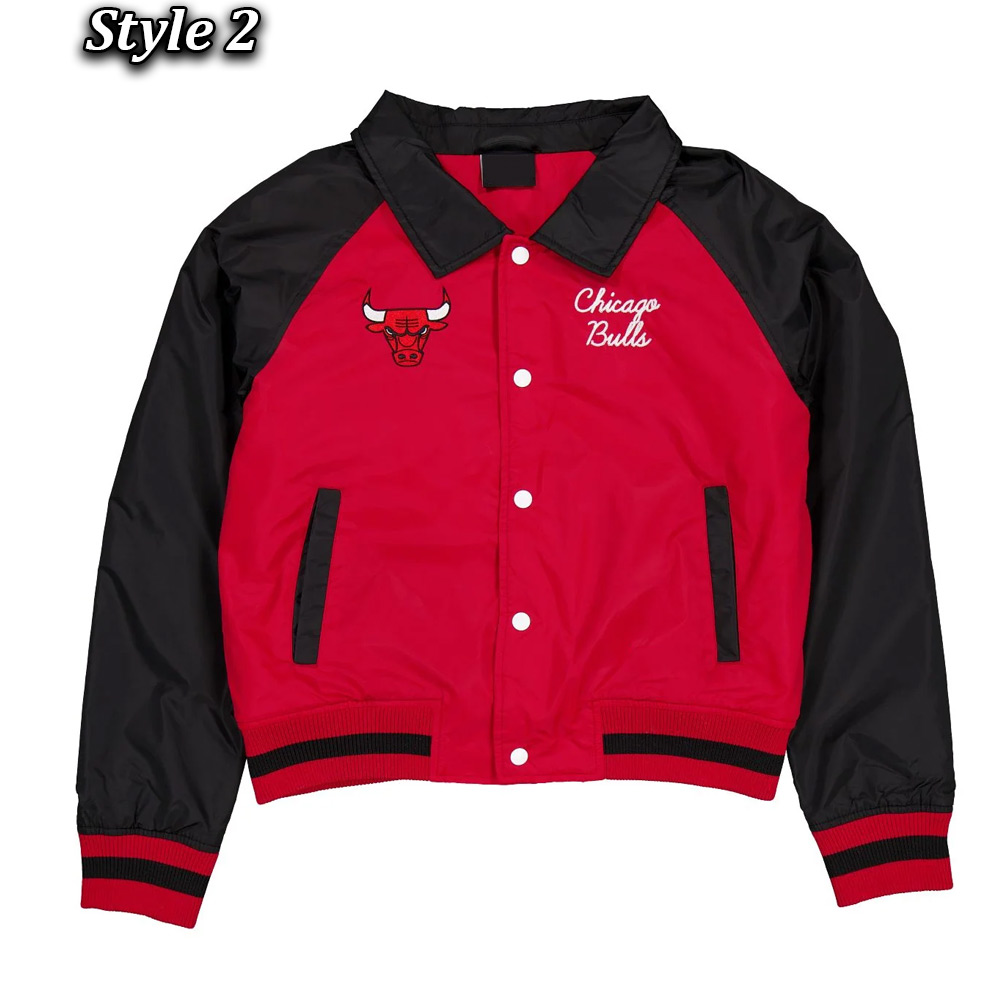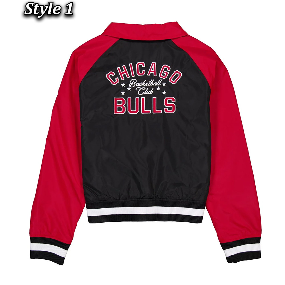 The color scheme of navy and red is inspired by the legendary Chicago Bulls, so it will help you definitely be noticed. The shirt style collar and the snap tab closure of Chicago Bulls black and red throwback jacket give it a sporty appearance which can be worn with any clothing style.