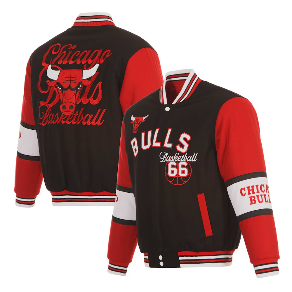 Chicago Bulls Black/Red Varsity Full-Zip Wool Jacket