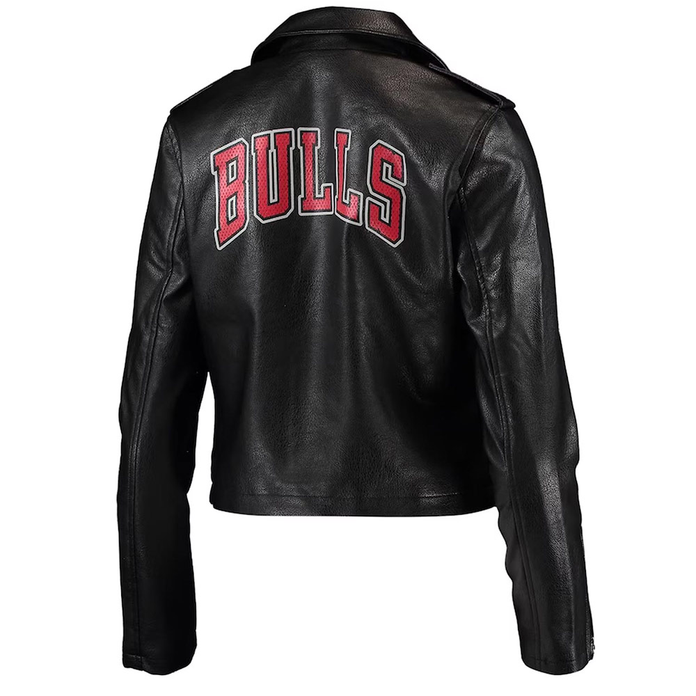 Chicago Bulls Motorcycle Black Leather Full-Zip Jacket