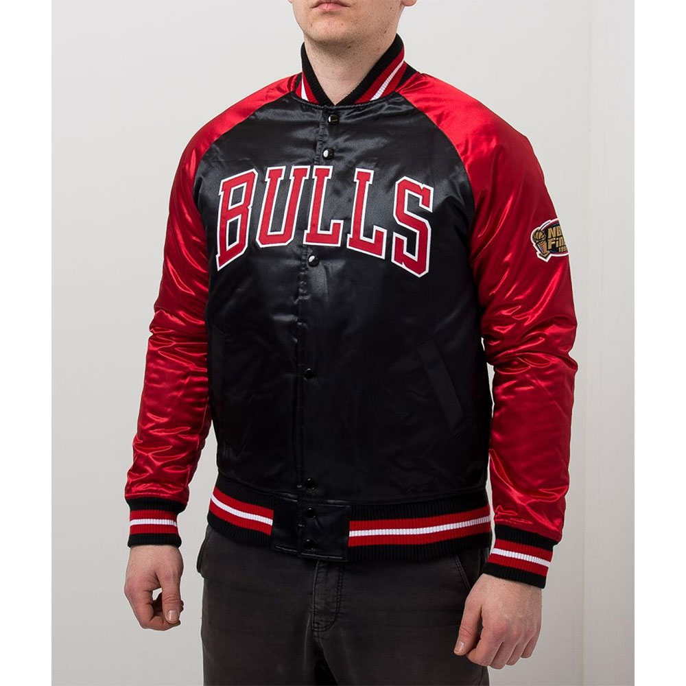 Step into the world of resilience and style with the Chicago Bulls Tough Season Black and Red Satin Jacket. Expertly crafted from premium satin, this jacket embodies the unyielding spirit of the team. The bold black and red color scheme speaks of determination and captures attention effortlessly. The full-snap front closure marries functionality with nostalgia, while the rib-knit collar and cuffs infuse a classic essence. Immerse yourself in the comfort of the smooth satin inner lining, cocooned in luxury. The Chicago Bulls emblem displayed on the jacket proudly showcases your allegiance to the team. With its balanced design of durability and contemporary style, the Tough Season Chicago Bulls Black and Red Satin Jacket is more than just an attire—it’s a statement of your unwavering dedication.