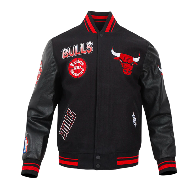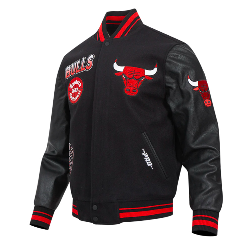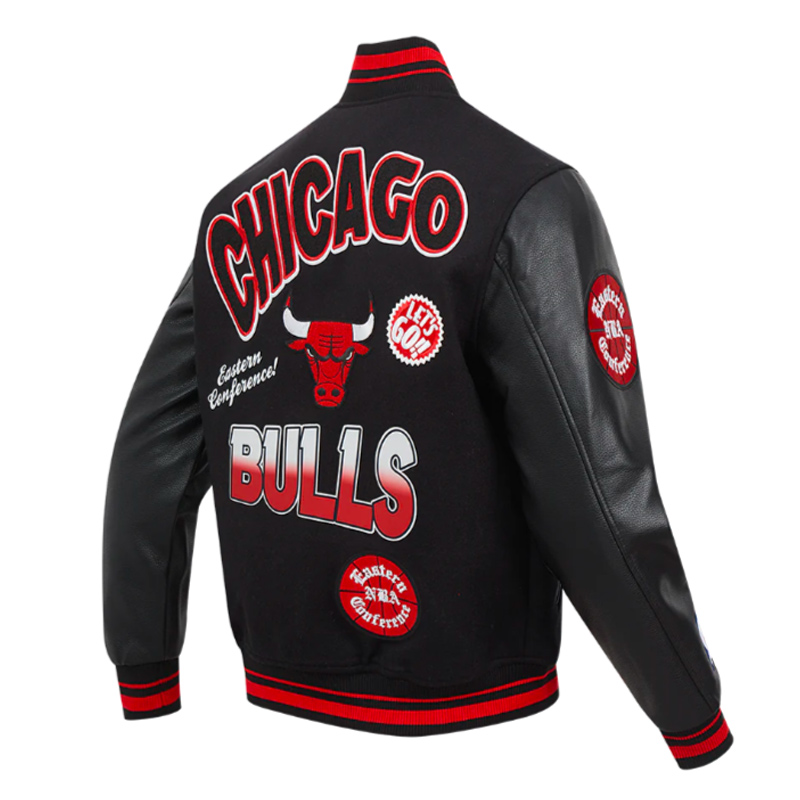Chicago Bulls Turn It Up Classic Rib Varsity Black Wool/Leather Jacket