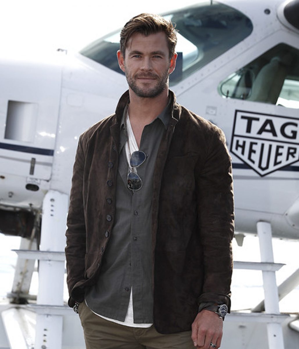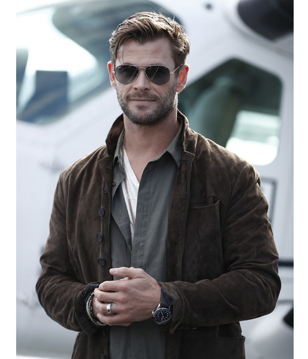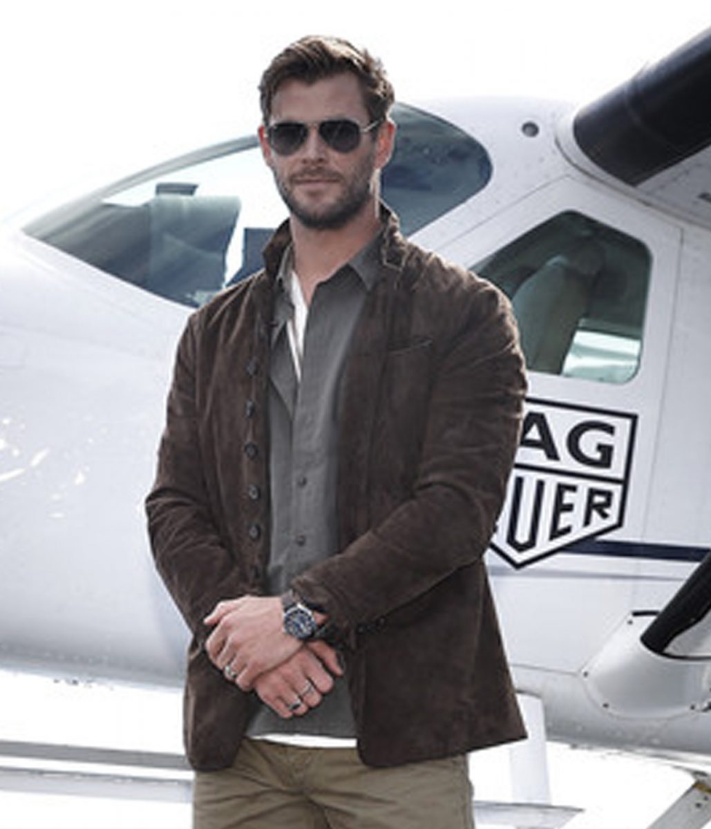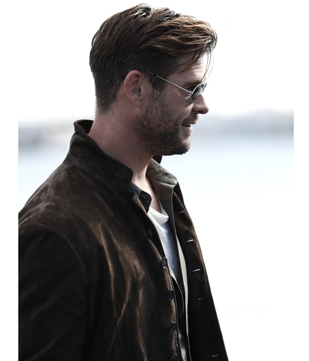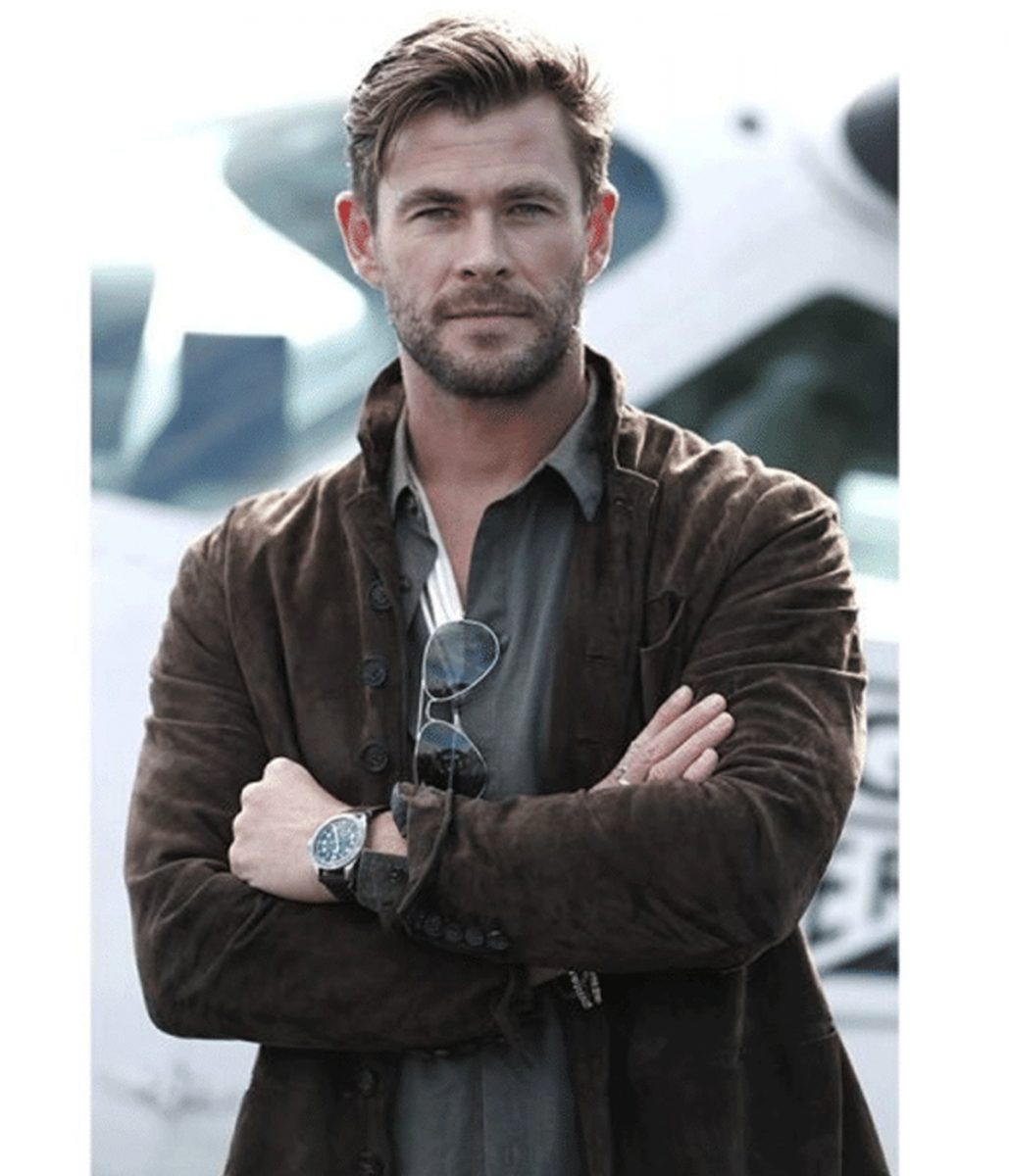 Chris Hemsworth Spiderhead Steve Abnesti Brown Suede Leather Jacket