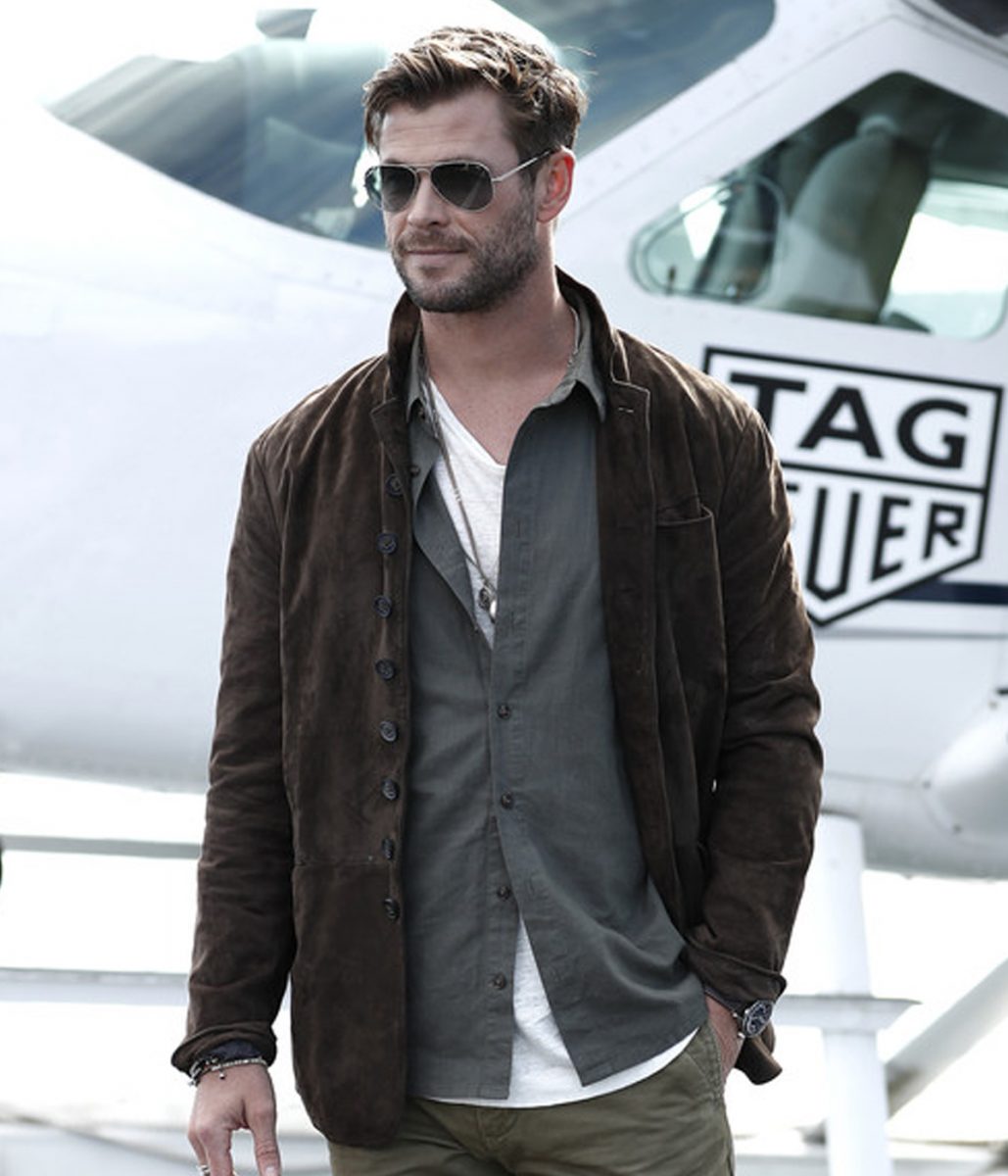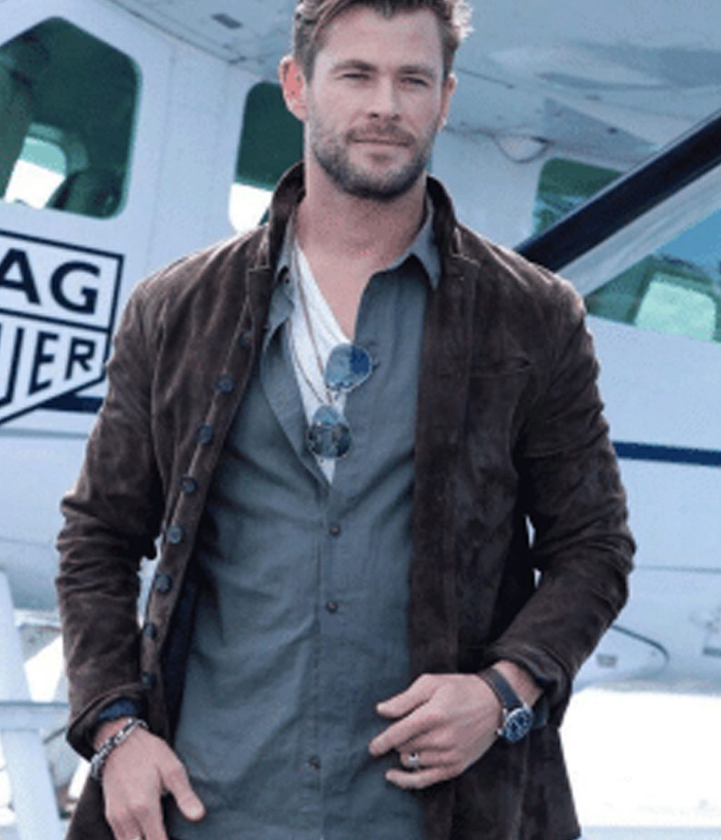 The Steve Abnesti jacket is fabricated of Suede leather. The jacket is available in a brown color which gives it an attractive and isolated look. The collar of the jacket is stand up style. It has a buttoned-style front closure. A soft viscose inner lining of the jacket keeps you peaceful and warm. The sleeves of the Chris Hemsworth Spiderhead jacket are full-length ends with buttoned style cuffs. The jacket has two outer waists and one inside pocket to keep your money and protect your hands. The fine quality stitching of the Steve Abnesti jacket makes it comfortable and desirable to wear. The jacket has classical office style.
