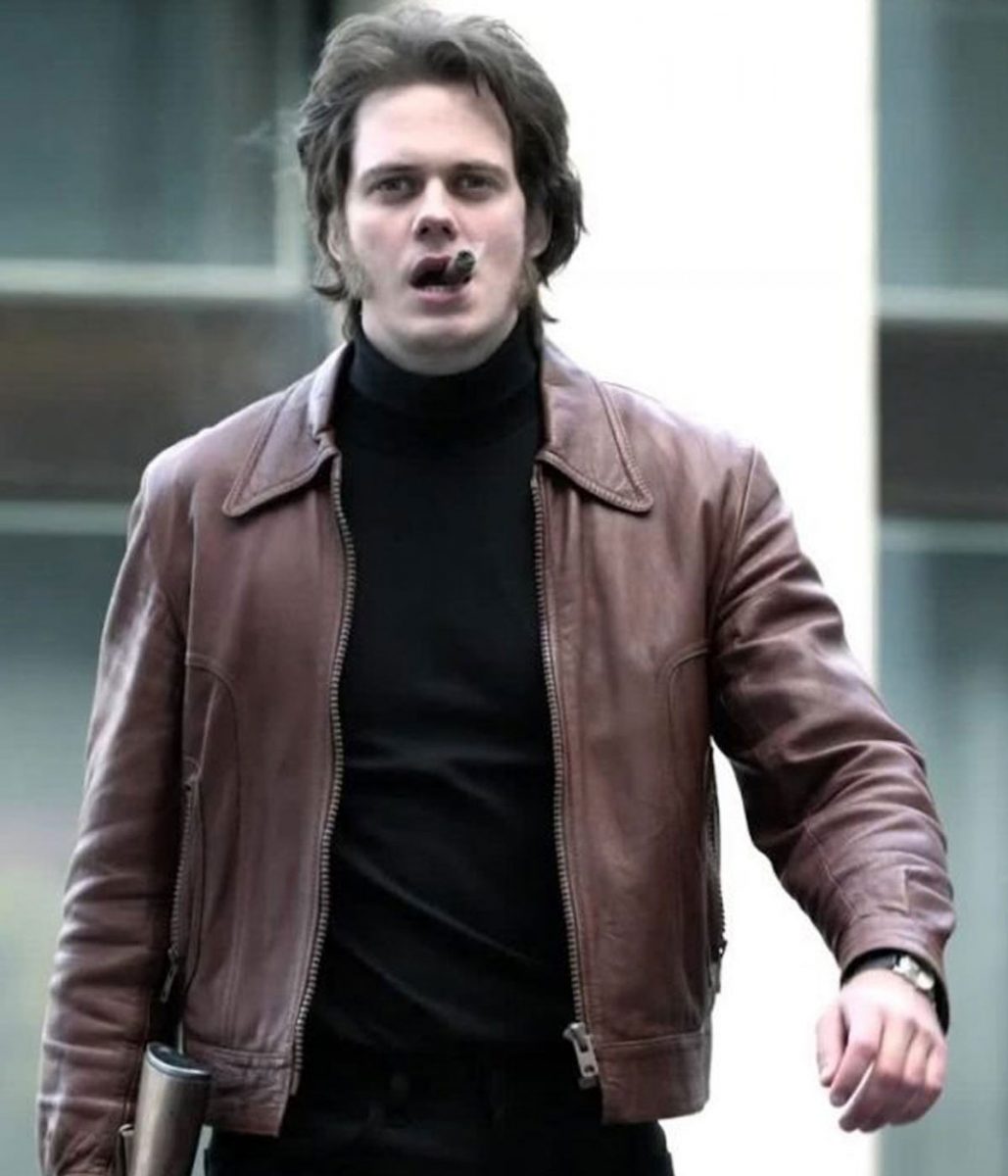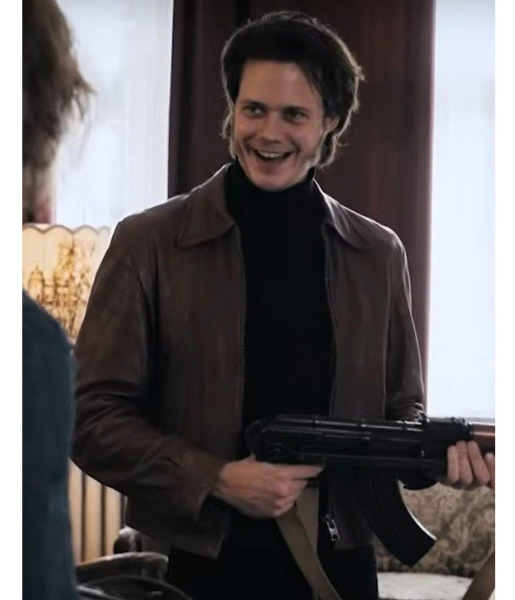 Bill Skarsgard Clark TV Series Clark Olofsson Brown Leather Jacket
