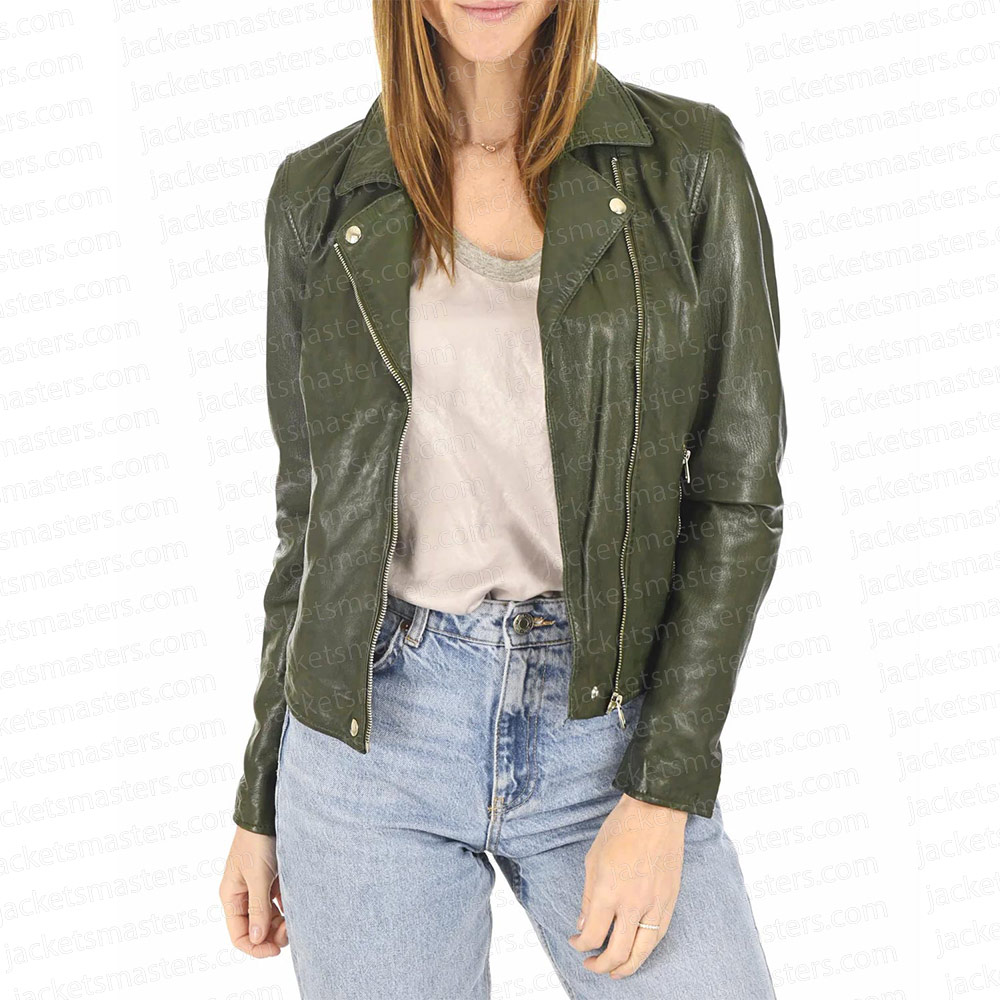 Class of 09 Ashley Poet Motorcycle Green Leather Jacket