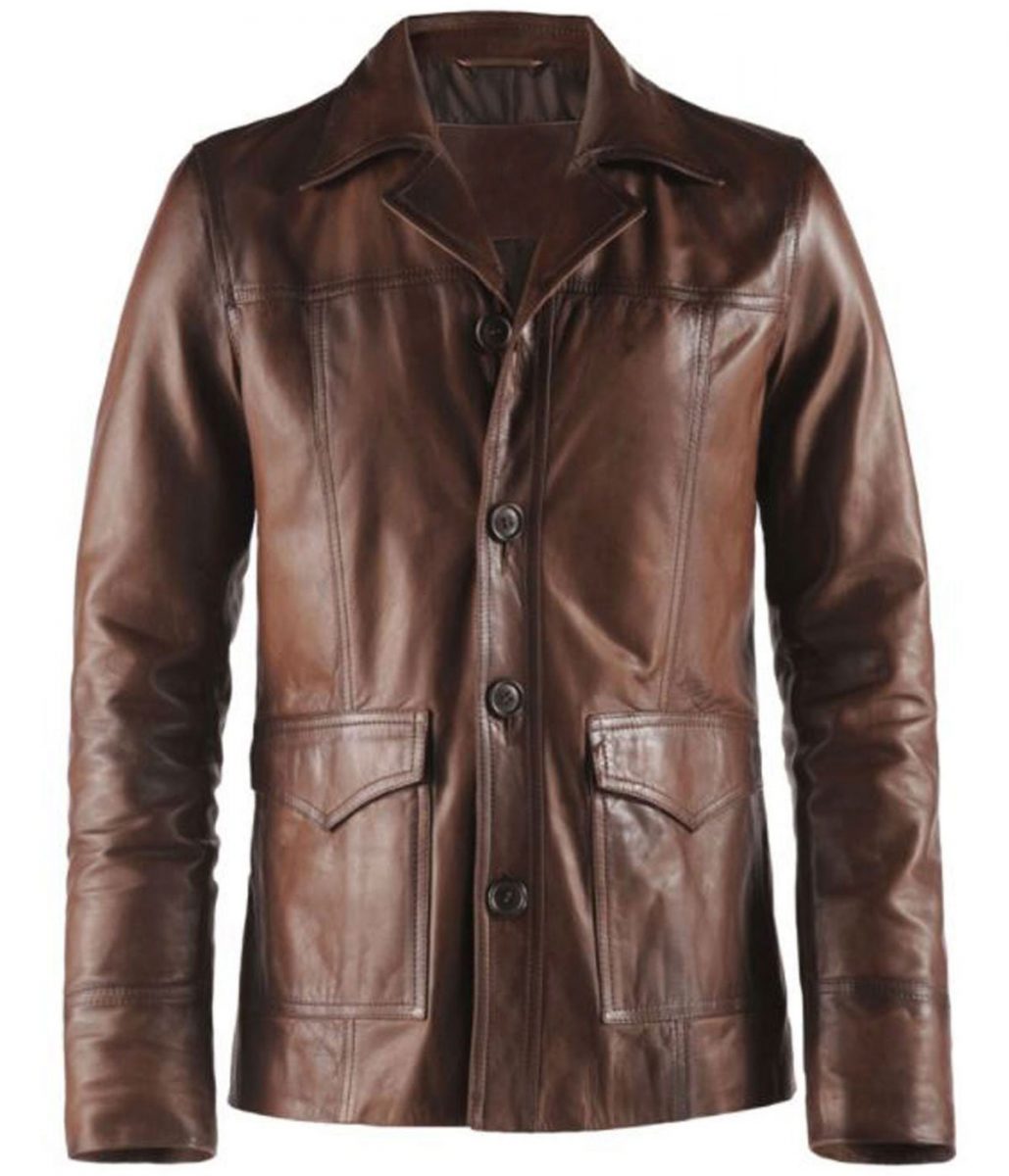 The Hitman leather jacket is made from high-quality genuine leather. The jacket is available in a majestic brown color, which gives it an innovative and enchanted look. The collar of the jacket is a shirt style. It has a classic buttoned front closure. A soft viscose inner lining of the jacket keeps you warm and relaxed. The sleeves of the Classic 70’s leather jacket are full-length ends with open hem cuffs. The jacket has two side waist pockets and two inside pockets for keeping stuff. The fine quality stitching of the Hitman leather jacket makes it durable and comfortable to wear. The jacket is an ideal choice for stylish men.