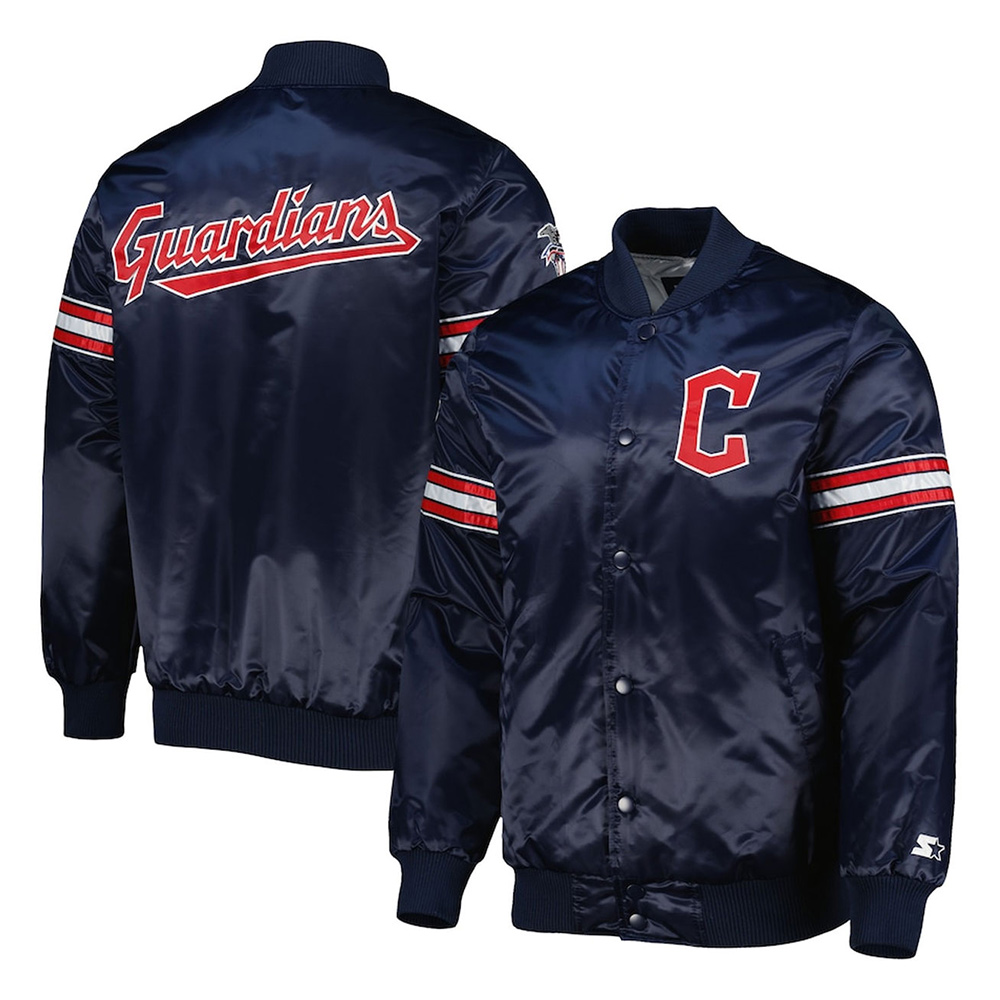 Starter Navy Blue Pick & Roll Cleveland Guardians Satin Full-Snap Jacket