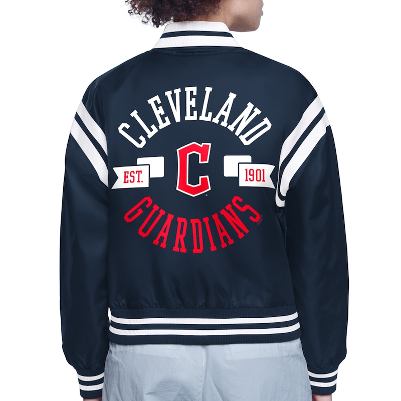 Cleveland Guardians Printed Logo Full-Snap Varsity Satin Jacket
