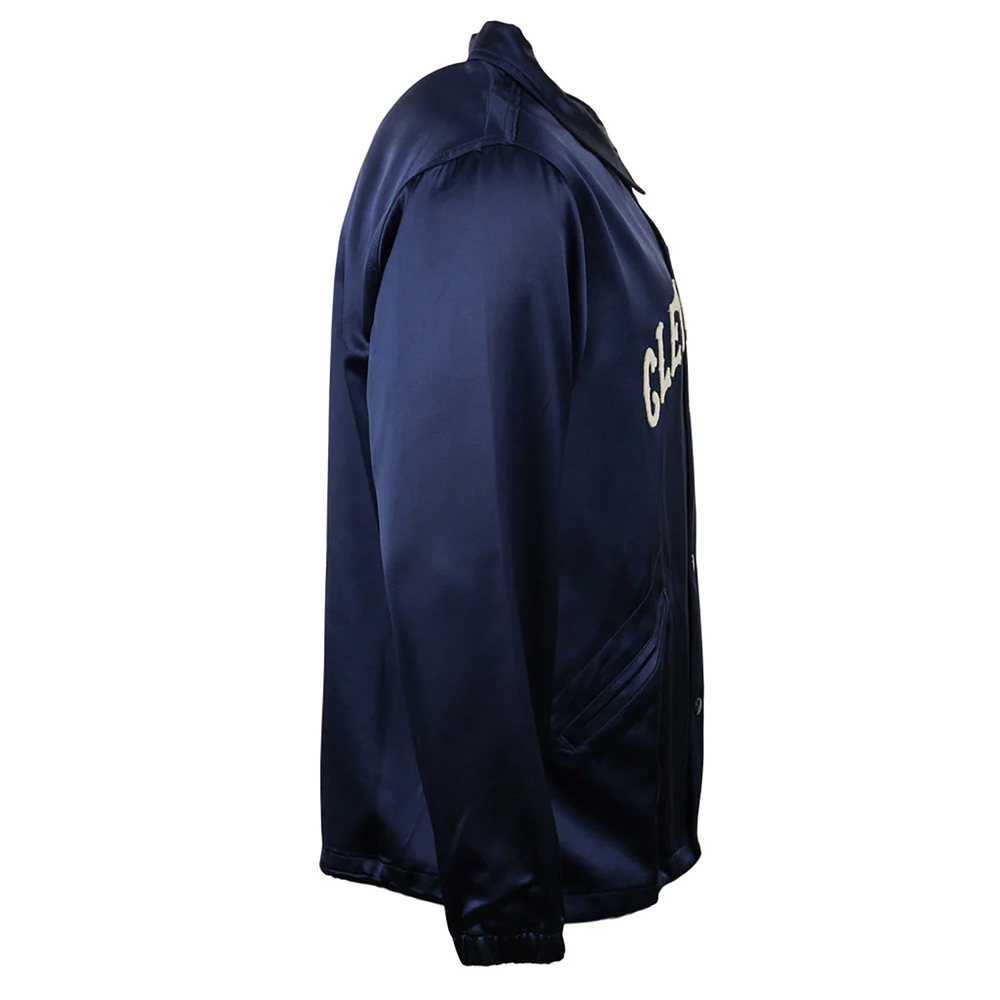 The feature of snap-tab closure allows adjusting the condition of the collar and then securing Cleveland Indians 1938 satin windbreaker, and the shirt-style collar makes the appearance look much more traditional. Elastic cuffs at the end of the long sleeves give extra warmth to the hand and make this jacket perfect for moderately cold, to some extent windy, days at ballpark or walking around town.