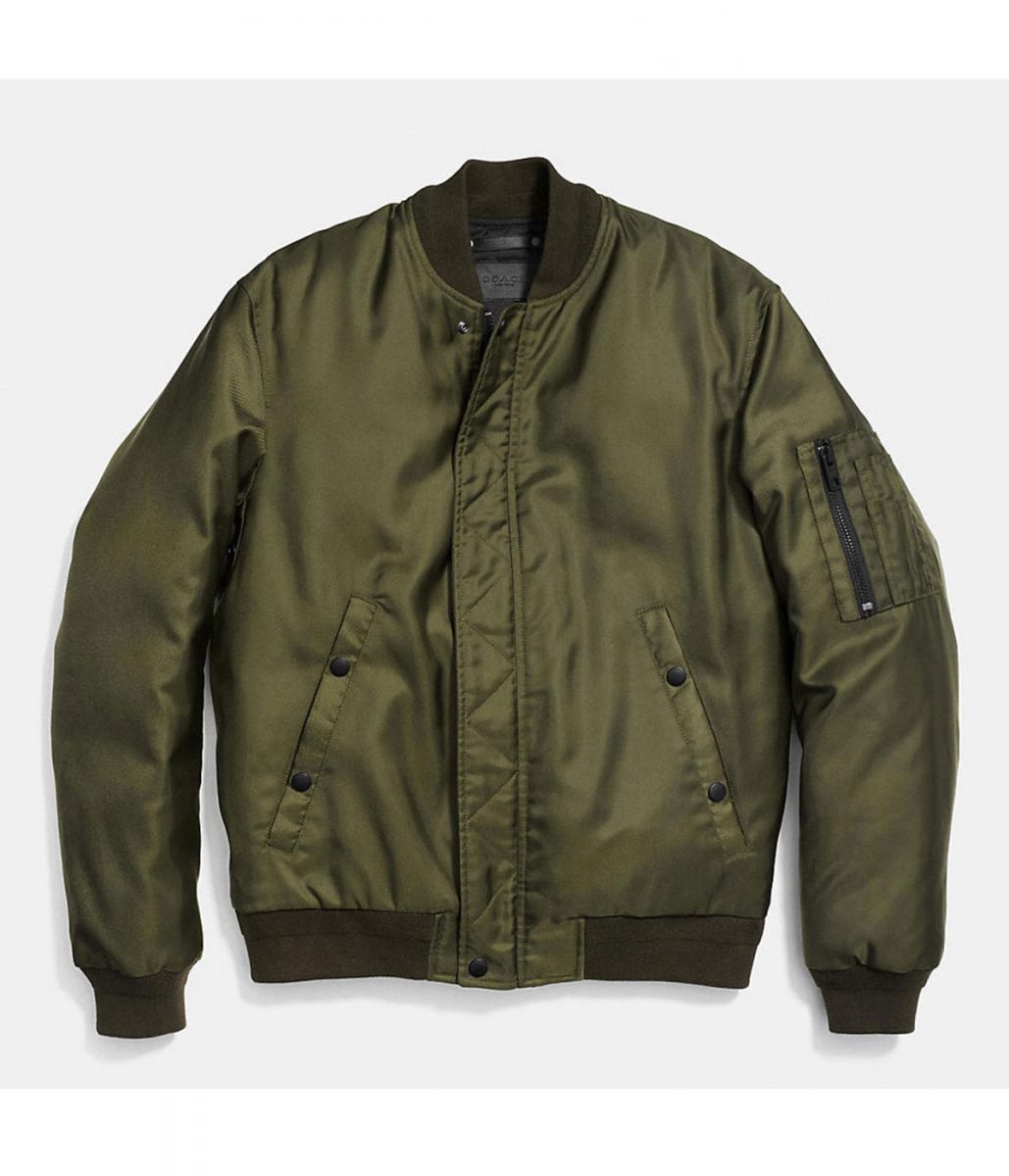 The external side of the Coach Bomber jacket is made from Satin. The jacket is available in mesmerizing black and gorgeous green color which gives it an attractive and enchanting look. The collar of the jacket is rib-knitted. It has a branded YKK zipper over buttoned-style front closure with a rib-knitted hemline. A soft viscose inner lining of the jacket keeps you warm and relaxed. The sleeves of the Coach MA-1 jacket are full length with rib knitted cuffs. The jacket has two side waist buttoned pockets and two inner pockets to save your products and hands warm. The fine quality stitching of the Coach Bomber jacket makes it durable and desirable to wear. The jacket is an ideal choice for casual wear and stylish men.