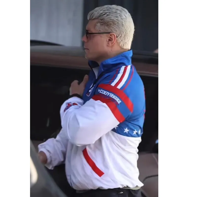 The Nightmare Cody Rhodes Windbreaker Jacket is a bold combination of sport style and pride in being a fan, and is in demand by both men and women who wish to embody the power of the American Nightmare. This jacket is made of lightweight nylon but durable enough to provide a polished appearance and comfort and durability. Its breathable and easy to wear soft viscose lining makes it perfect and suitable in casual outings, sports events, or even wrestling fan gatherings.
