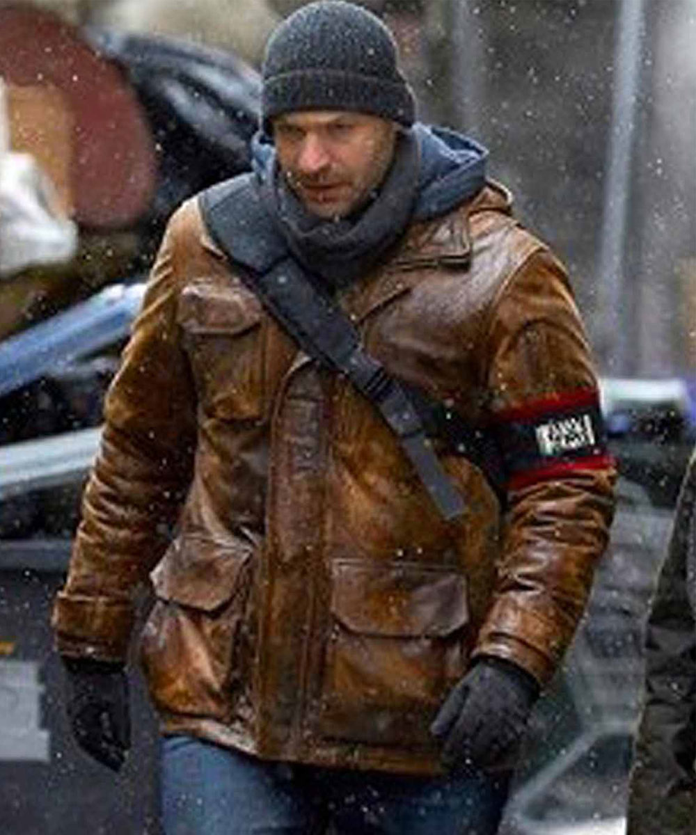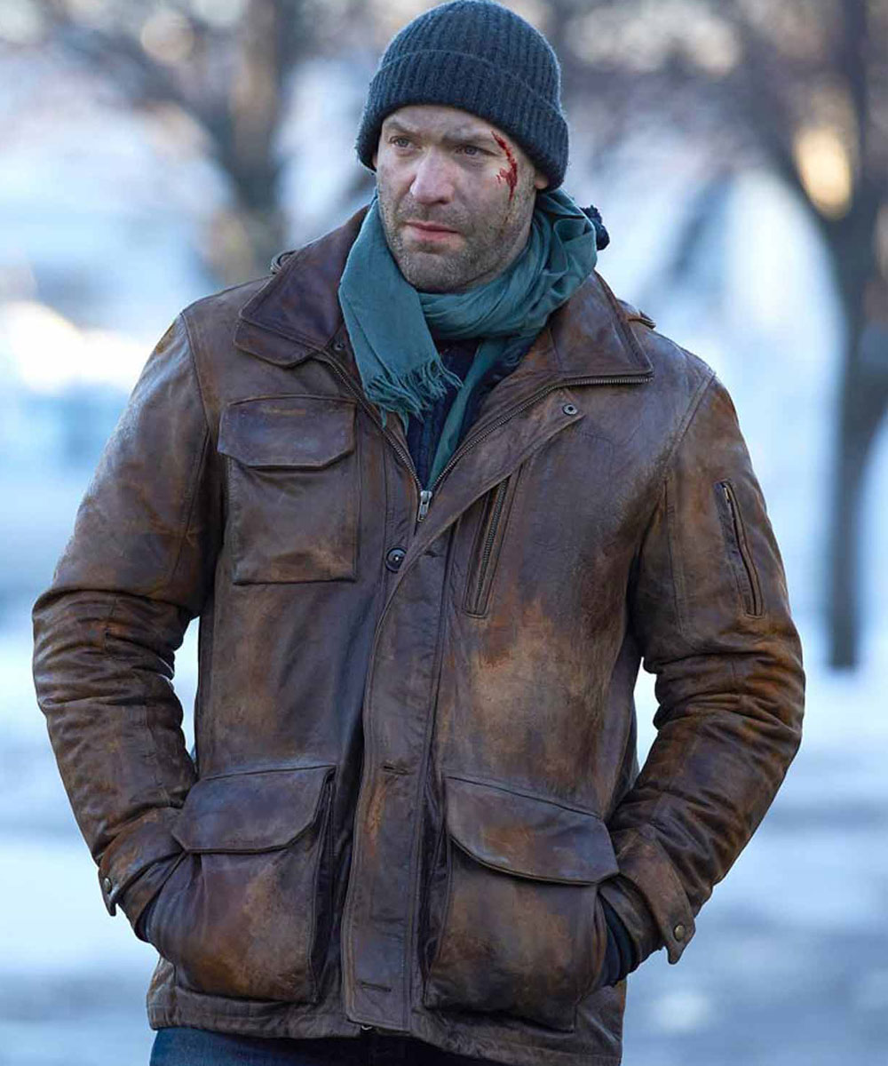 The Ephraim Goodweather leather jacket is made from high-quality genuine leather material. The jacket is available in a majestic dark brown color which gives it an innovative and enchanted look. The collar of the jacket is a shirt style. It has a branded YYK front zipper and buttoned closure. A soft viscose inner lining of the jacket keeps you warm and relaxed. The Corey Stoll the Strain leather jacket sleeves are long and fitted with smart open hem cuffs with buttoned straps. The jacket has multiple pockets for keeping stuff. The fine quality stitching of the Ephraim Goodweather leather jacket makes it durable and comfortable to wear. The jacket is ideal for celebration gatherings.