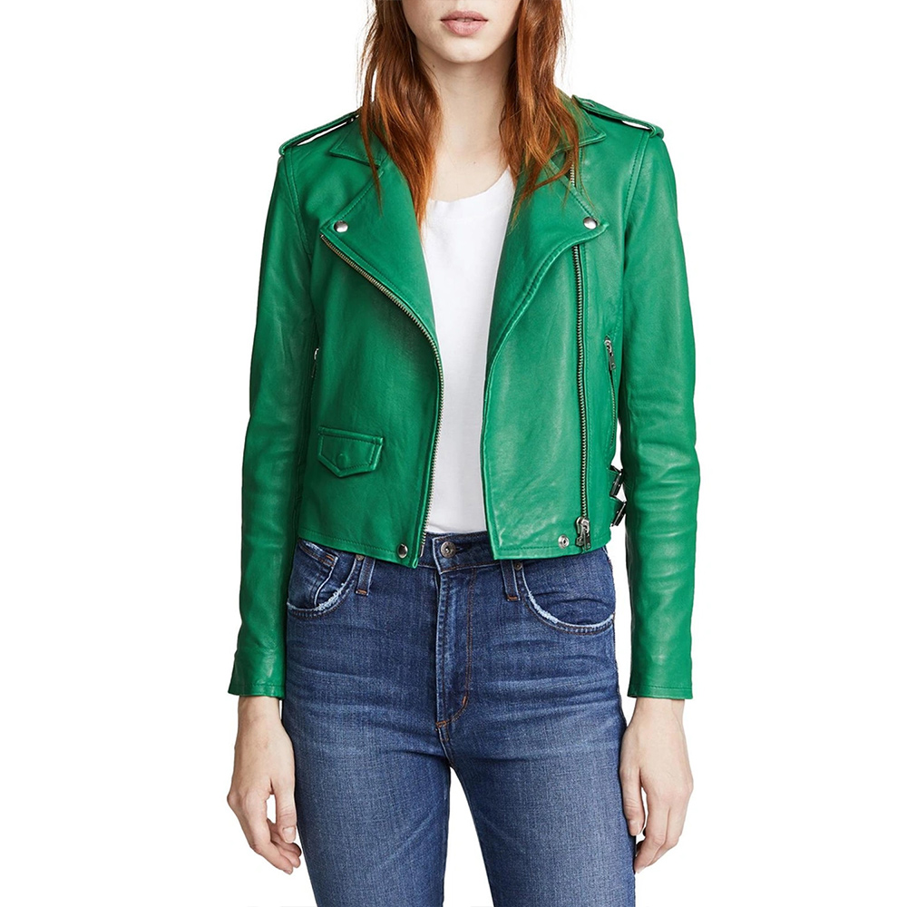 Beat Shazam Corinne Fox Green Leather Biker Jacket