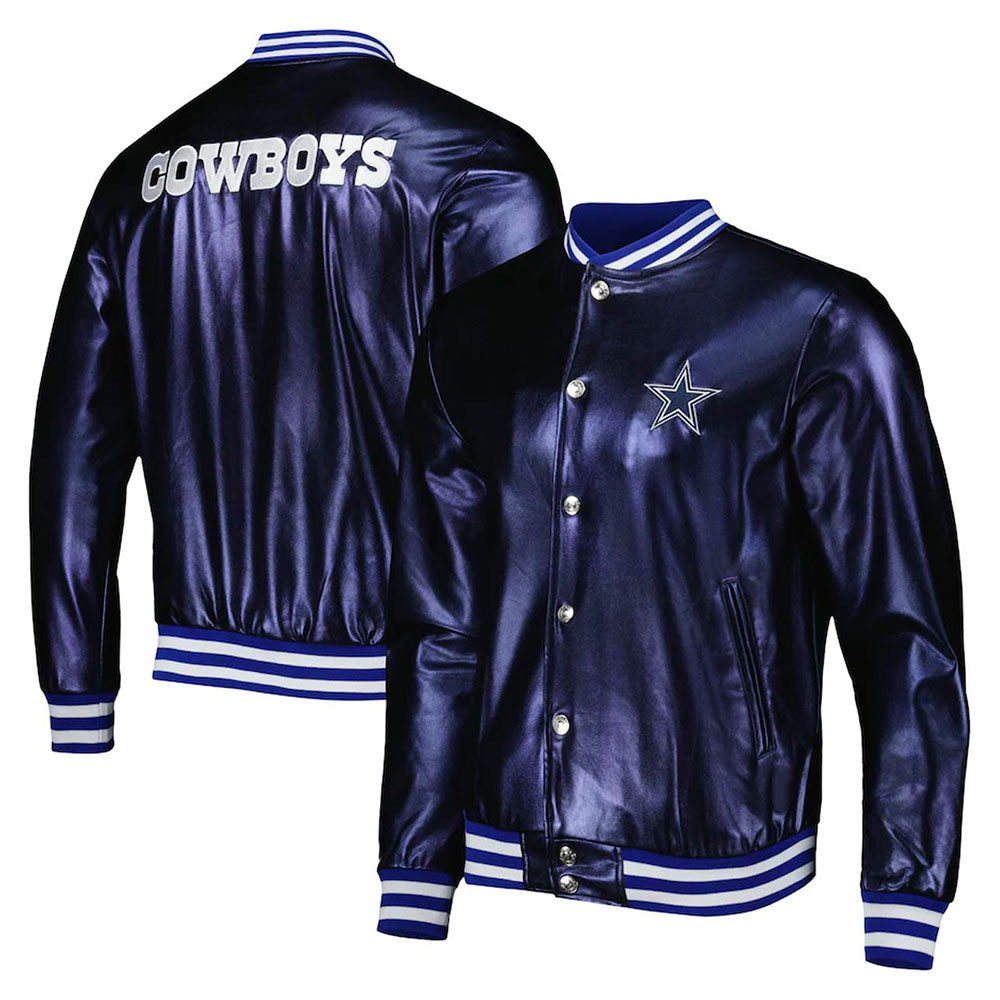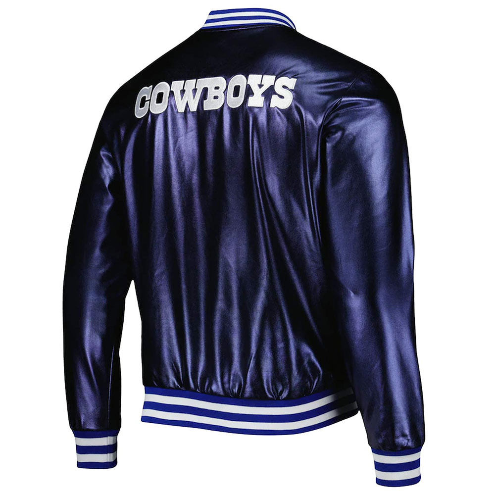 Dallas Cowboys Metallic Full-Snap Leather Navy Blue Jacket