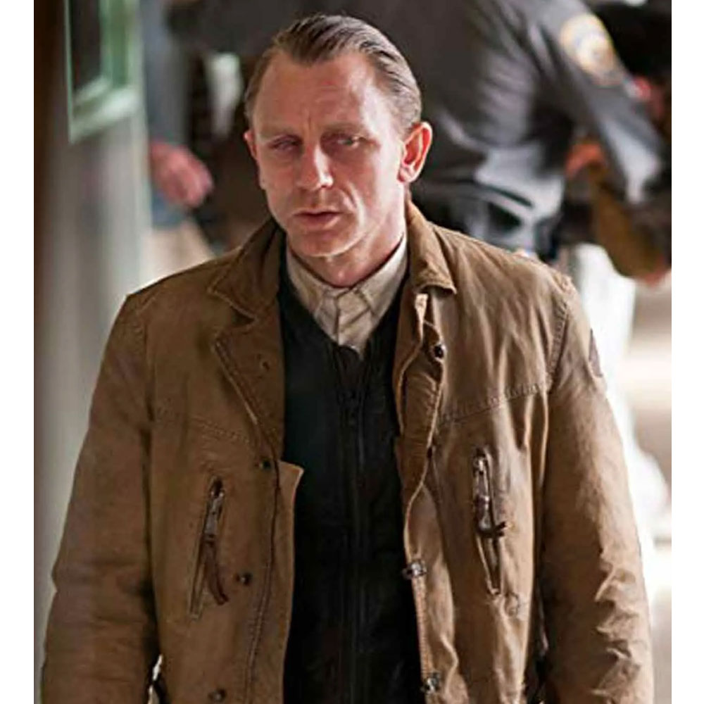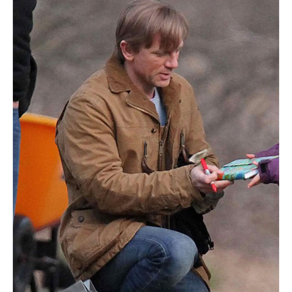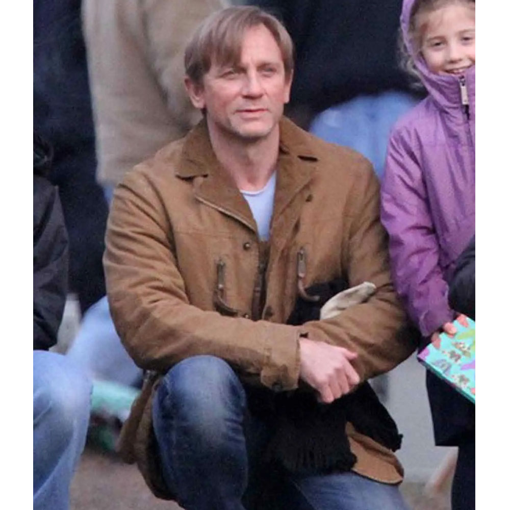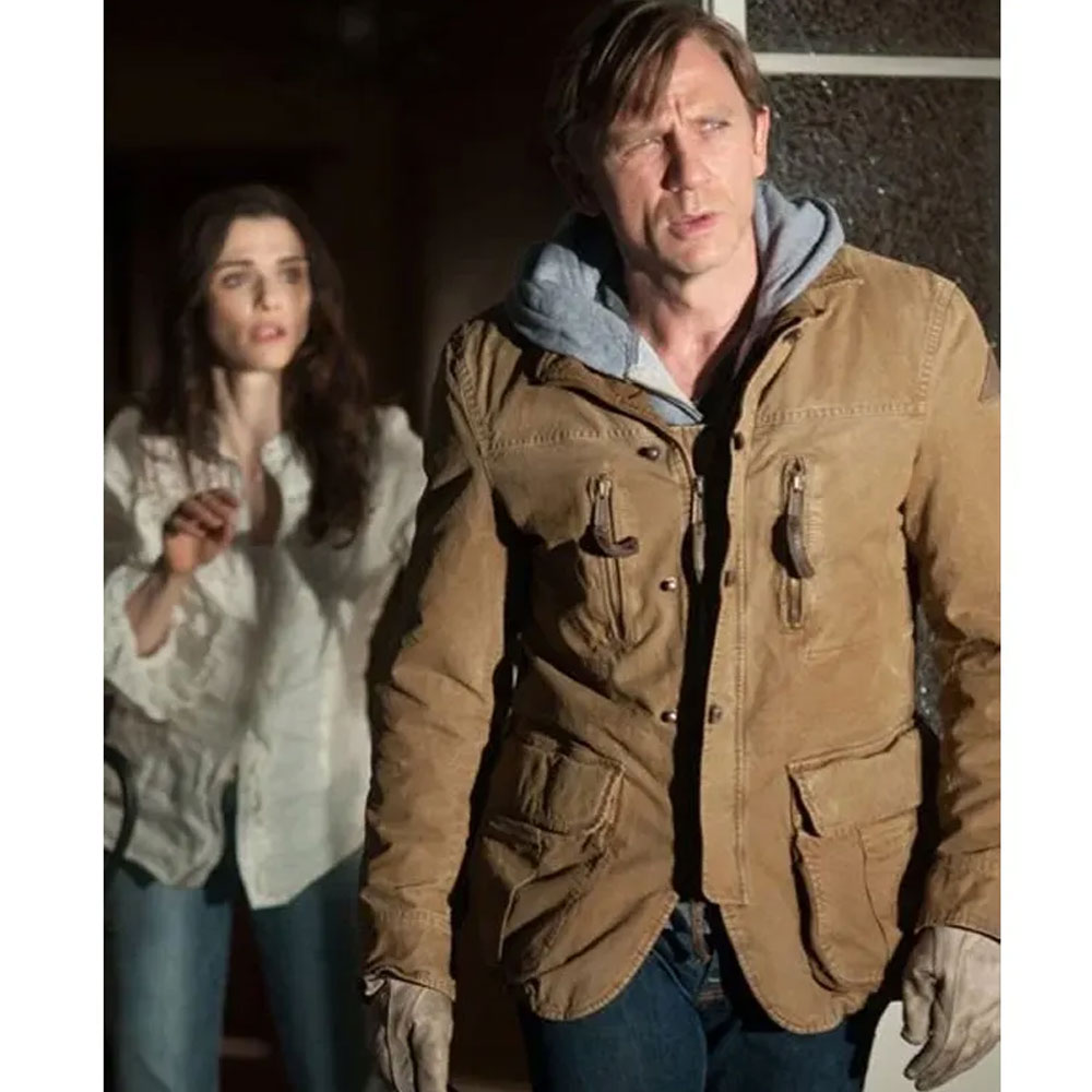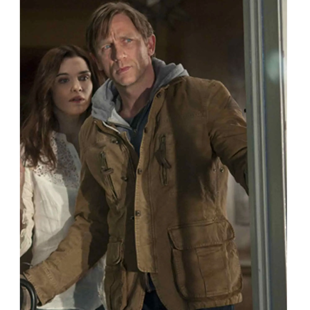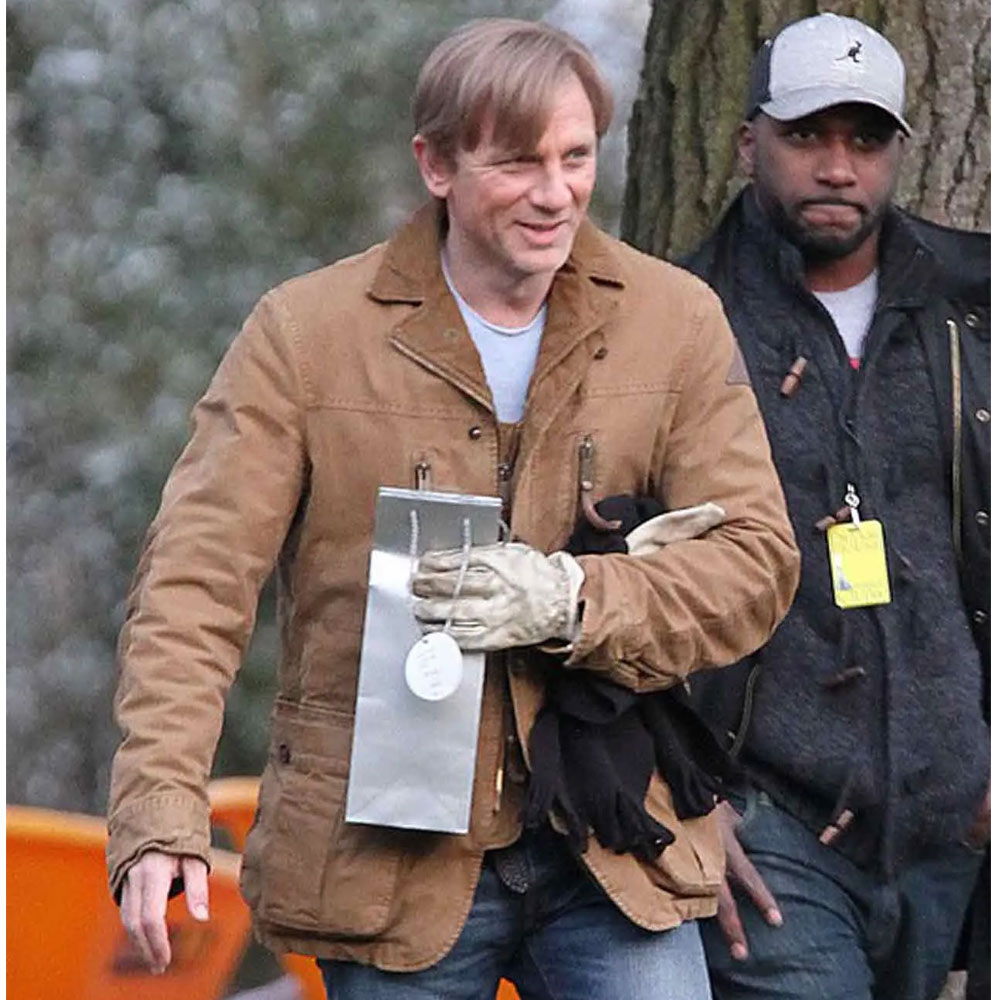 Unveil the enchantment of the Dream House Daniel Craig Jacket, a cinematic marvel crafted from light brown cotton. This jacket, worn by Daniel Craig as Will Atenton, is a canvas of elegance and mystery. The lapel-style collar and open hem cuffs exude sophistication, while the long, fitting sleeves add a touch of timeless style. Setting itself apart, the unique YKK zipper with buttoned closure makes a statement in both form and function. Balancing practicality with charm, two chest zipper pockets and two side waist flapped pockets add character. The soft viscose lining ensures comfort, transforming the Dream House Daniel Craig Jacket into more than just attire—it embodies cinematic elegance.