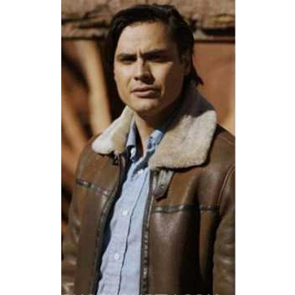 The Joe Leaphorn Shearling Leather jacket is made up of high-quality genuine leather. The jacket is available in a majestic brown color, which gives it an innovative and enchanted look. The jacket has rib knitted collar. The jacket has buttoned front closure. A soft faux shearling of the jacket keeps you warm and relaxed. The sleeves of Zahn Mcclarnon Dark Winds Shearling Leather jacket are long with rib knitted cuffs. The jacket has two inner and two side pockets. The fine quality stitching Joe Leaphorn Shearling Leather jacket makes it durable and desirable to wear. The jacket is an ideal choice to wear in parties.