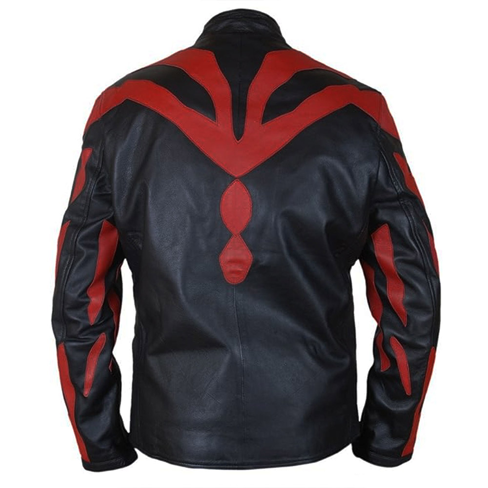This jacket is made from genuine black and red leather and it oozes out dominance and elegance at the same time. The inner part has a viscose lining to make it as comfortable as possible and to wear it during any event. The stand-up collar gives it a military or a political aura which gives the Star Wars Darth Maul Leather jacket that dramatic element.