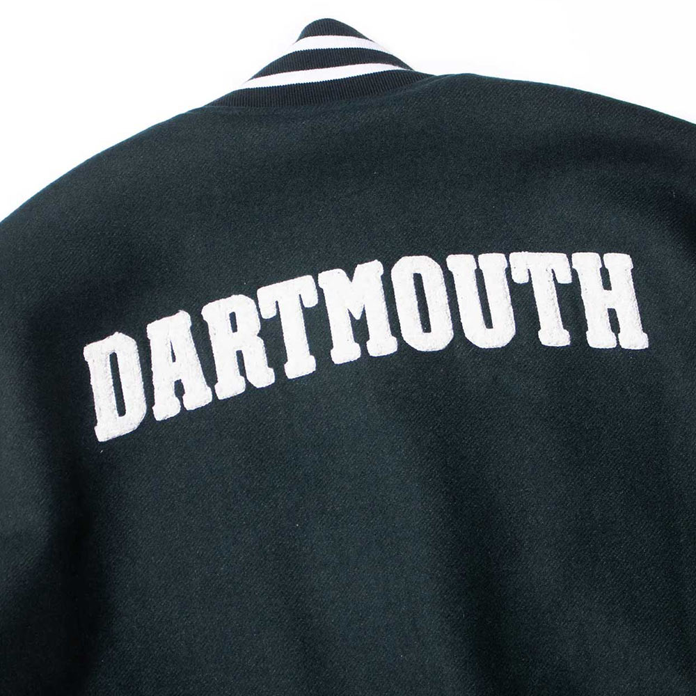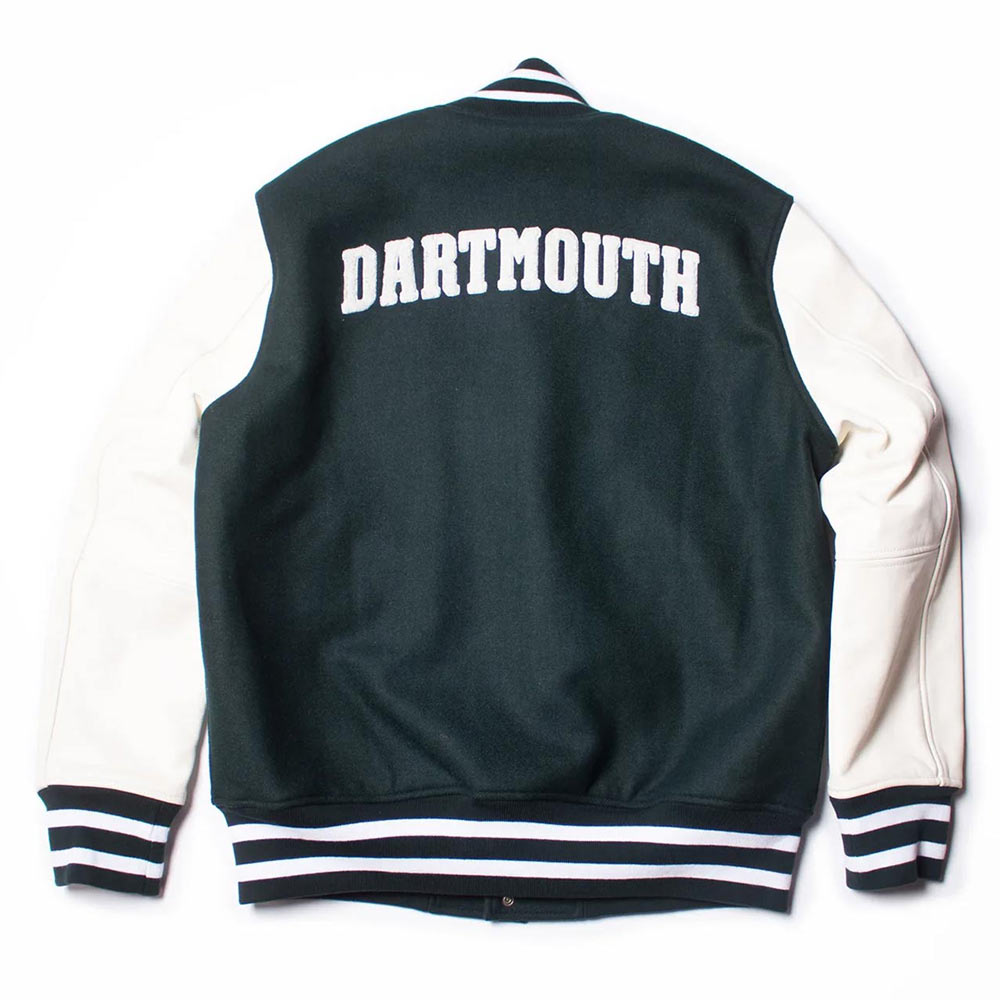 Green and White Dartmouth Full-Snap Wool/Leather Varsity Jacket