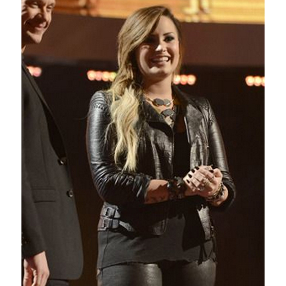 American Idol Season 13 Demi Lovato Black Leather Asymmetrical Jacket