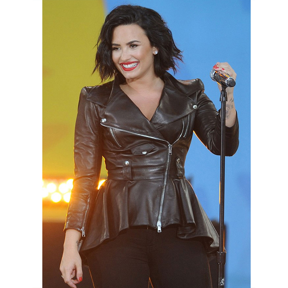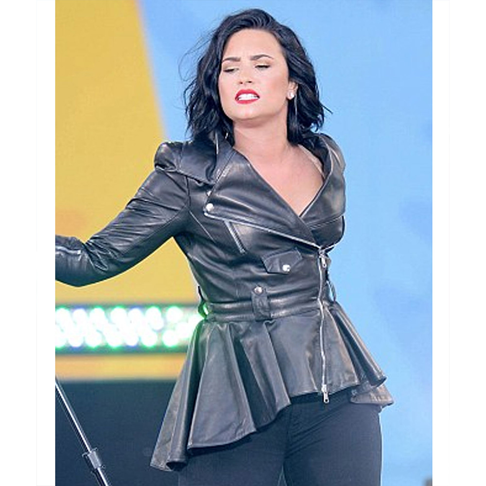 Unveil the essence of timeless elegance with the Demi Lovato Black Peplum Leather Jacket, as showcased on the esteemed platform of Good Morning America. Crafted from genuine leather, this jacket seamlessly merges style and comfort while highlighting Demi Lovato’s unique flair. The lapel style collar and asymmetrical zipper front closure lend a sense of contemporary edge, effortlessly blending classic and modern aesthetics. Soft viscose lining ensures day-long comfort, while the peplum design accentuates the jacket’s flattering silhouette. With long sleeves and open hem cuffs, the jacket epitomizes versatility and style. The fine quality stitching speaks to its meticulous craftsmanship, promising enduring elegance. Two zipper pockets add a touch of practicality to this distinctive piece. Whether worn casually or on special occasions, the Demi Lovato Black Peplum Leather Jacket is a statement of sophistication and individuality, invoking the charm of Demi Lovato’s charismatic presence.
