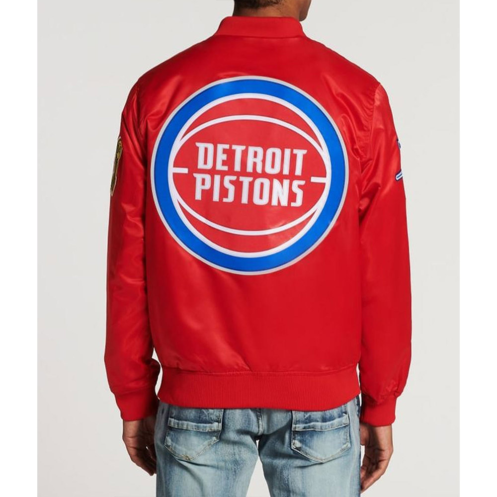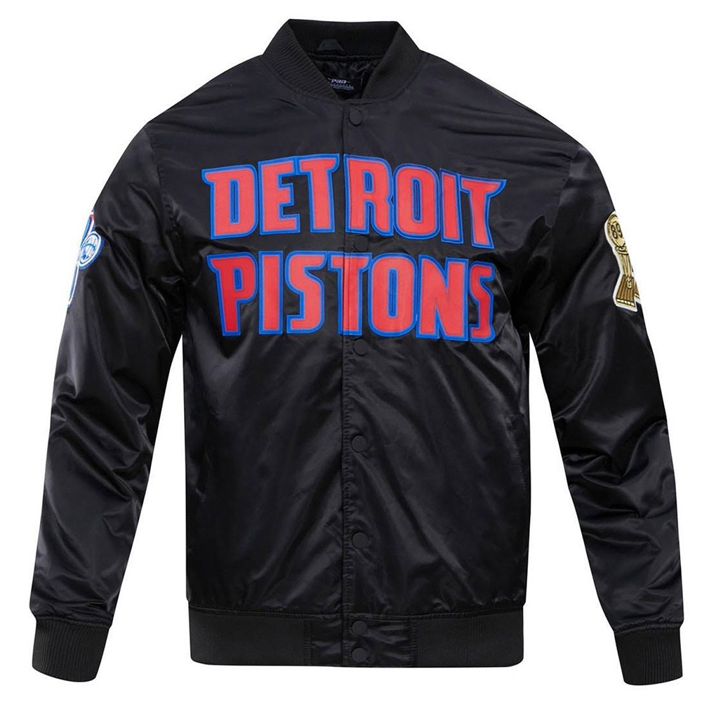 Experience the essence of bold style with the Satin Full-Snap Big Logo Detroit Pistons Black Jacket. Crafted from opulent satin, this jacket embodies timeless elegance. The deep black hue echoes the Pistons’ essence, while the rib-knitted collar and buttoned closure harmonize classic aesthetics with modern sophistication. Logos printed on the front, back, and sleeves boldly reflect your allegiance. The inner viscose lining offers comfort that complements its visual allure. Engage the intricate rib-knitted cuffs and embrace the finesse of long, fitting sleeves. Meticulous stitching and two side waist pockets underscore craftsmanship and practicality. The Big Logo Detroit Pistons Black Satin Jacket becomes your canvas to symbolize shared devotion and unwavering spirit.