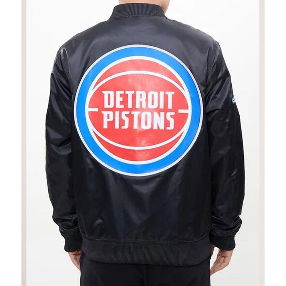 Black Big Logo Detroit Pistons Full-Snap Satin Jacket
