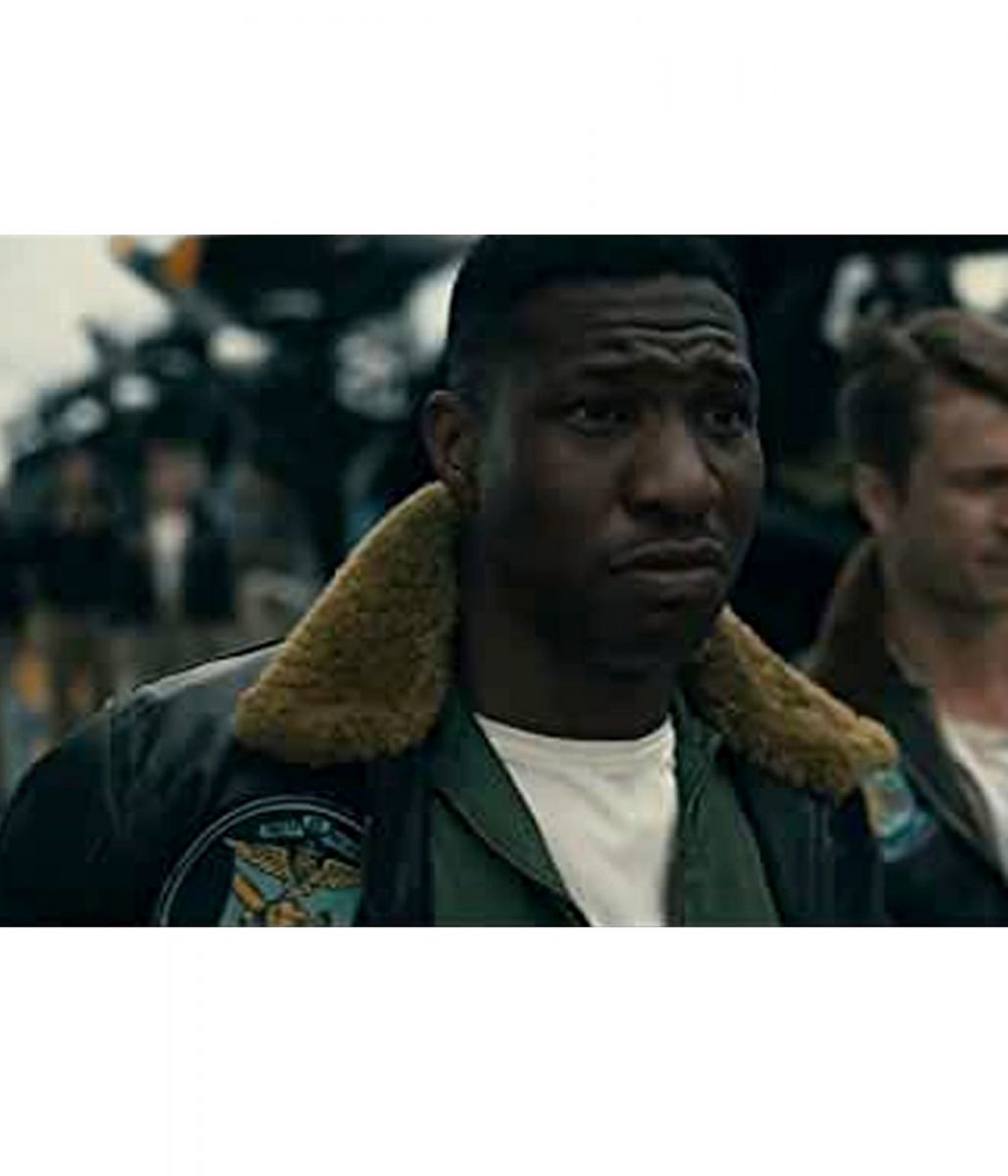 The Jesse Brown jacket external Body made from Genuine leather. The brown color gives the jacket a classically retro style. The jacket has a distinctive faux fur style collar. The concentric and parallel YKK zipper style front closure makes the jacket your perfect choice to stand at a party. The inner soft viscose lining of the jacket makes it unbeatable in the race of comfiness. The plain and protective sleeves of Jonathan Majors Devotion leather jacket with rib knitted cuffs are what you are looking for. The jacket has two outside and two inside pockets for keeping stuff. The iconic quality stitching of the Jesse Brown jacket makes it to wear in cold winters. These qualities make the jacket an ideal choice for stylish men and women.