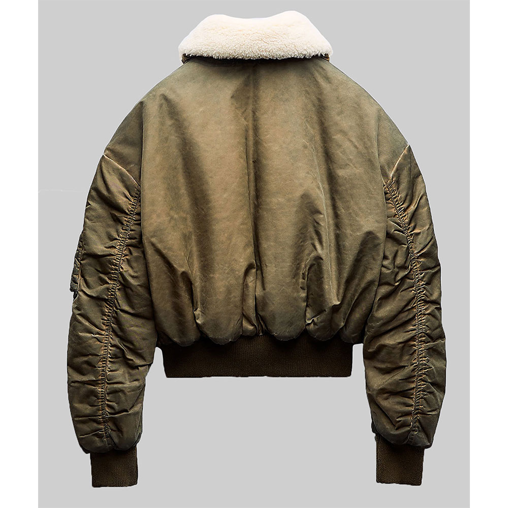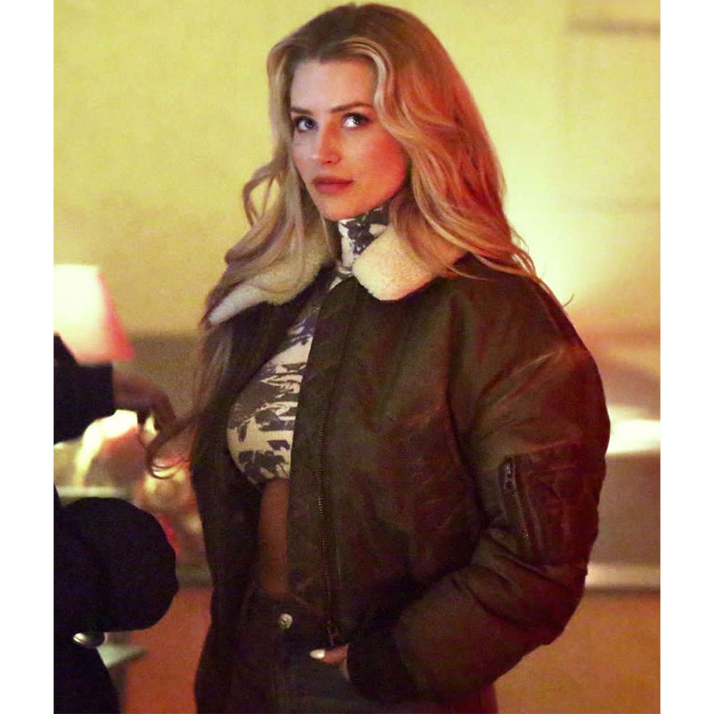 Lottie Moss April X Diana Bomber Green Satin Jacket with Fur Collar