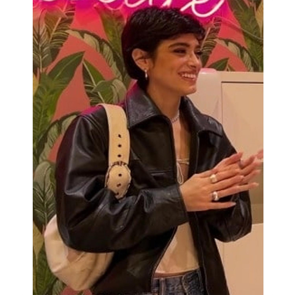 Enlight the spotlight with the Damelio Show Dixie D’Amelio Leather Jacket, as seen on Dixie D’Amelio in The Damelio Show Season 3 Episode 4. Crafted from genuine black leather, this jacket is a perfect fusion of fashion and comfort. The shirt-style collar and branded YKK zipper closure add a touch of sophistication, making it a versatile choice for any occasion. The rib-knitted cuffs and long sleeves contribute to the Dixie D’Amelio The Damelio Show Leather Jacket overall contemporary appeal. The viscose lining ensures a comfortable fit, and practicality is maintained with two outside pockets and one inner pocket. Impeccable stitching completes the ensemble, making this black leather jacket a must-have for those who appreciate bold fashion with a touch of refinement.