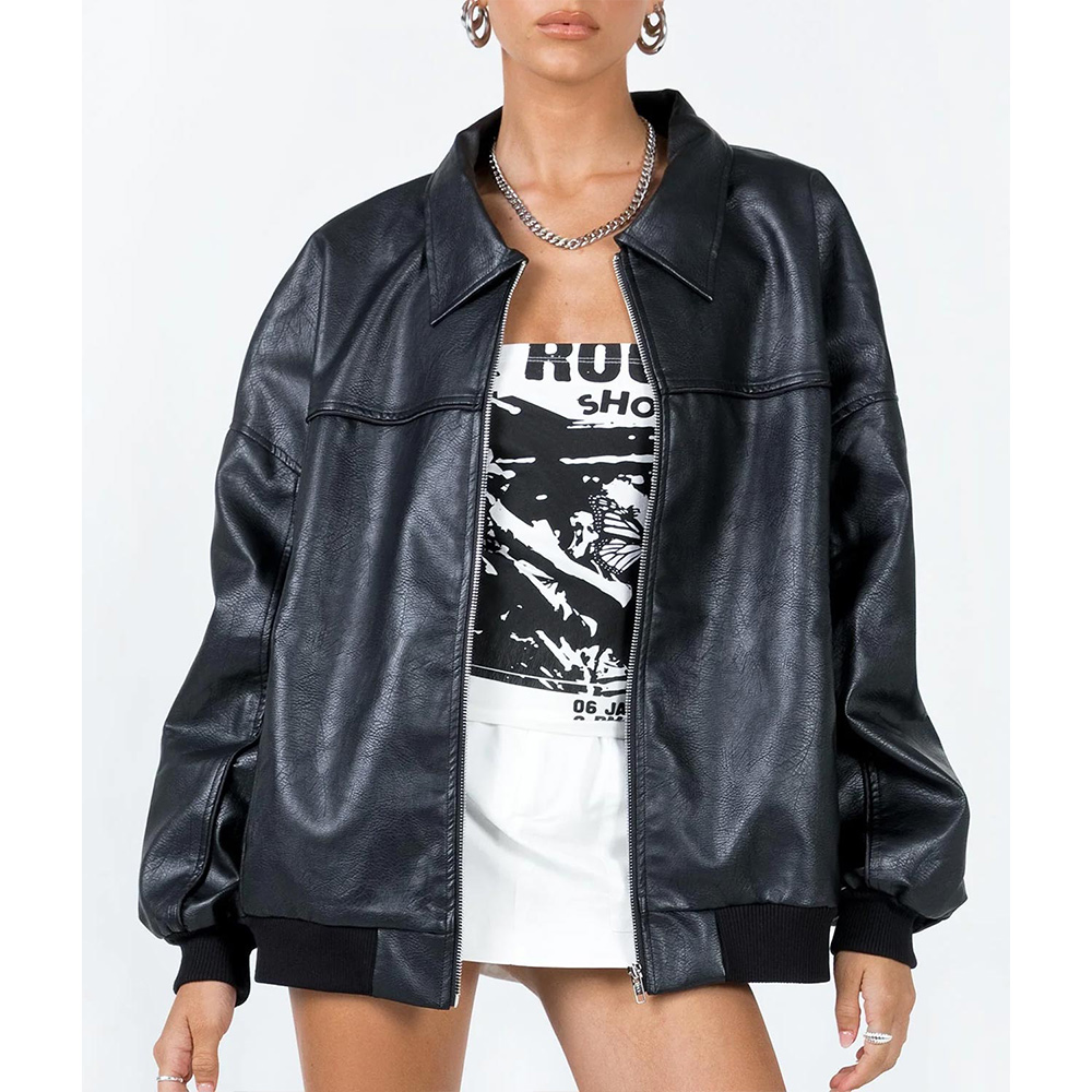 The Damelio Show Dixie D’Amelio Black Leather Bomber Jacket