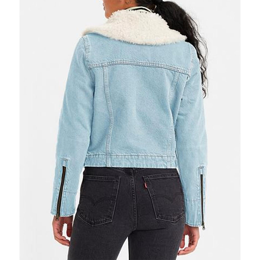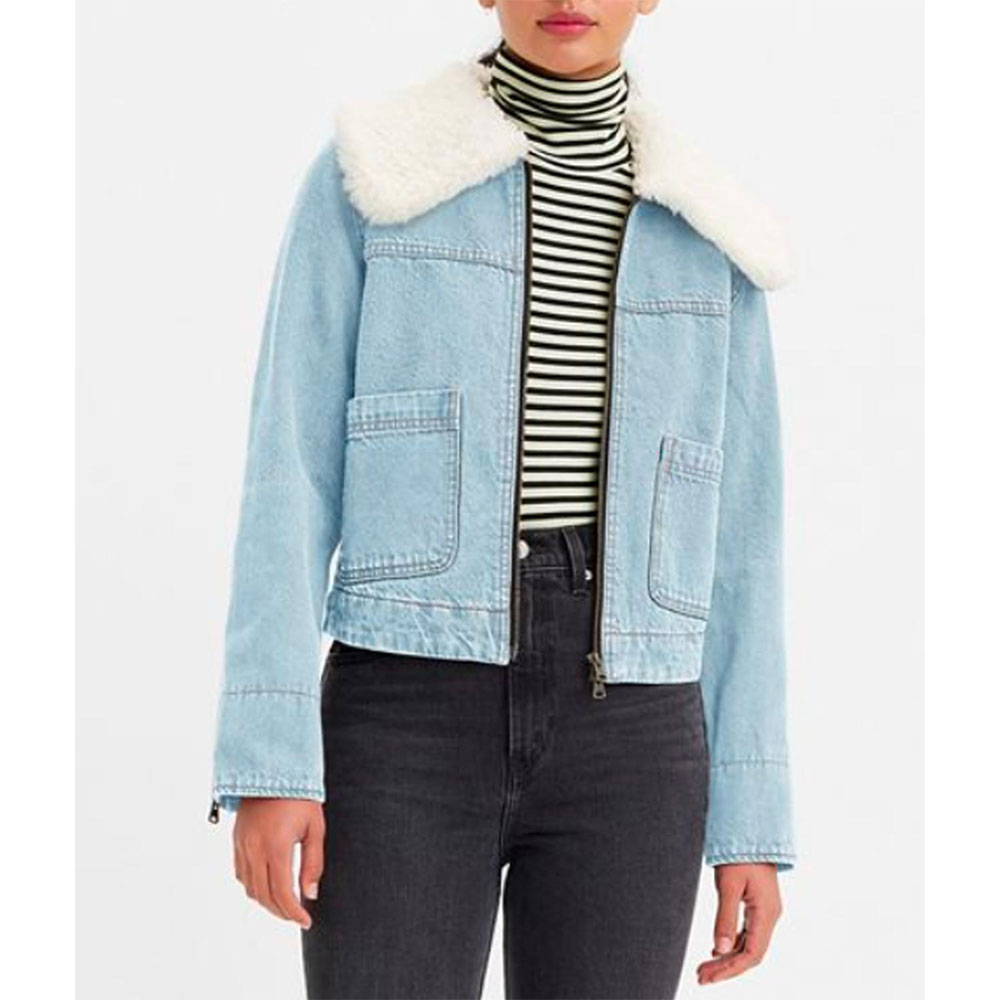 The Ruby Sunday Denim jacket is made up of high-quality denim. The jacket is available in glorious blue color, which gives it an innovative and attractive look. The jacket has shirt style collar. The jacket has buttoned front closure. A soft inner viscose lining of the jacket keeps you warm and relaxed. The sleeves of Doctor Who Millie Gibson Retro Sherpa Trucker jacket are long with rib knitted cuffs. The jacket has two inner and two side pockets. The fine quality stitching of Ruby Sunday Denim jacket is comfortable and desirable to wear. The jacket is an ideal choice to wear in parties.