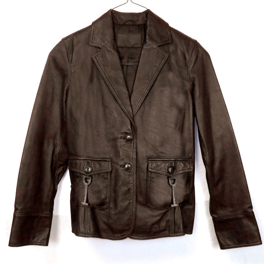 The Sarah Jane Smith Leather jacket is made from high quality genuine leather. The blazer is available in a majestic brown color, which gives it an innovative and enchanted look. The blazer has lapel style collar. The blazer has a buttoned front closure. A soft viscose inner lining of the blazer keeps you warm and relaxed. The sleeves of Blonde Ana De Armas blazer are long with open hem cuffs. The blazer has one inner and two outside pockets for keeping stuff. The fine quality stitching of the Sarah Jane Smith Leather jacket makes it durable and desirable to wear. The blazer is an ideal choice for stylish men.
