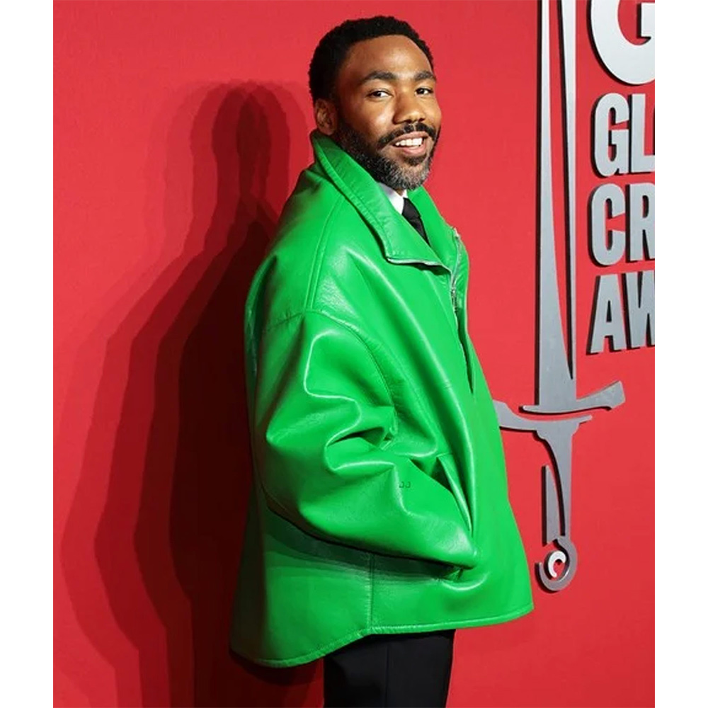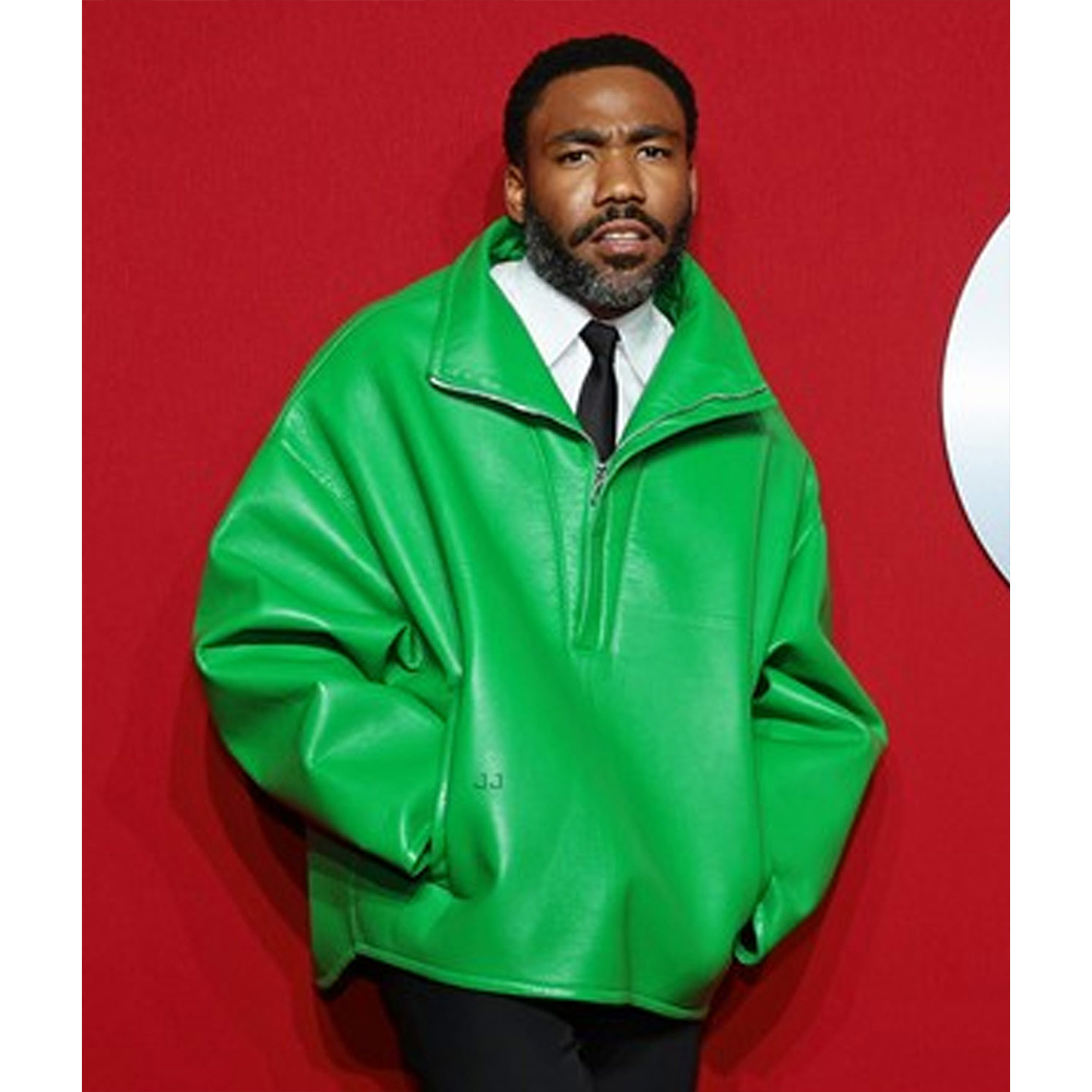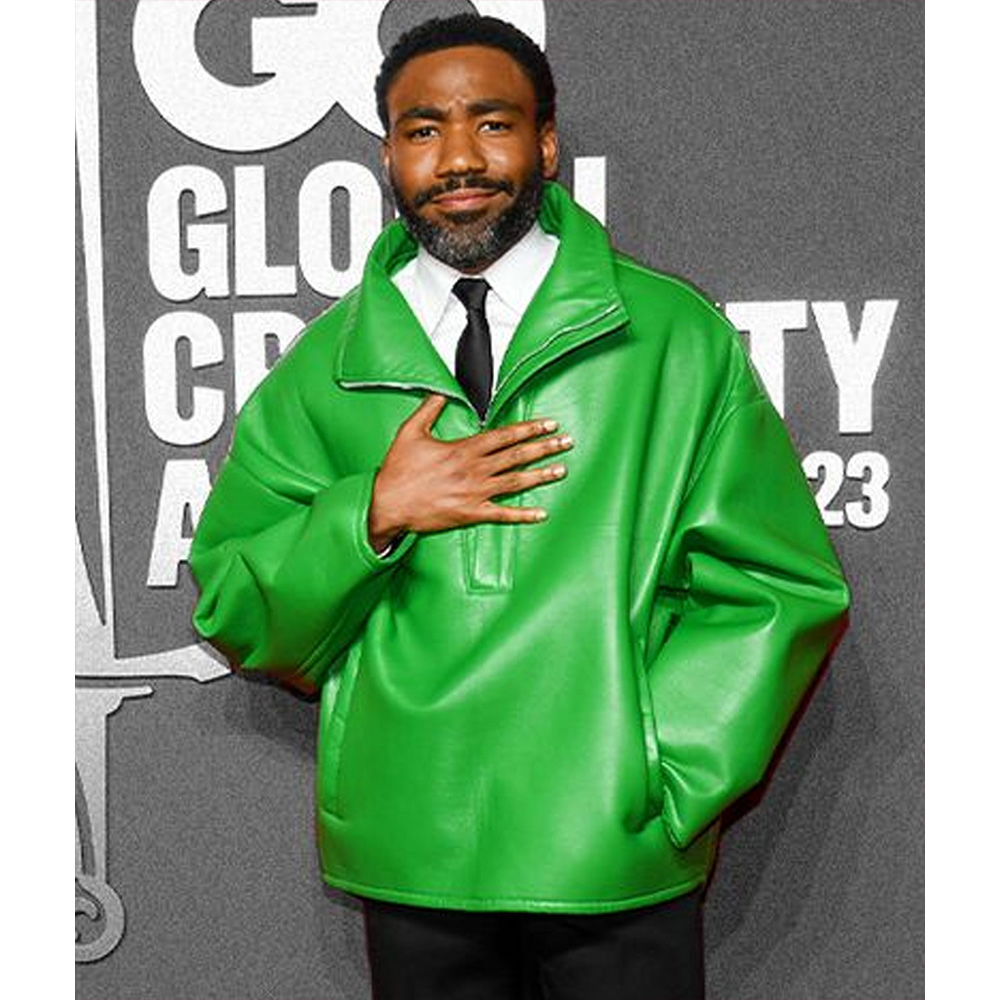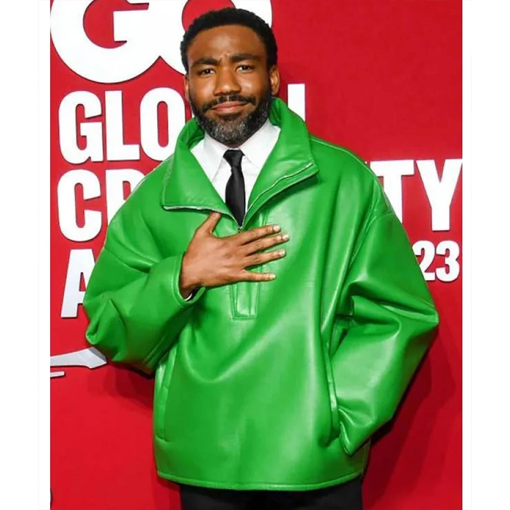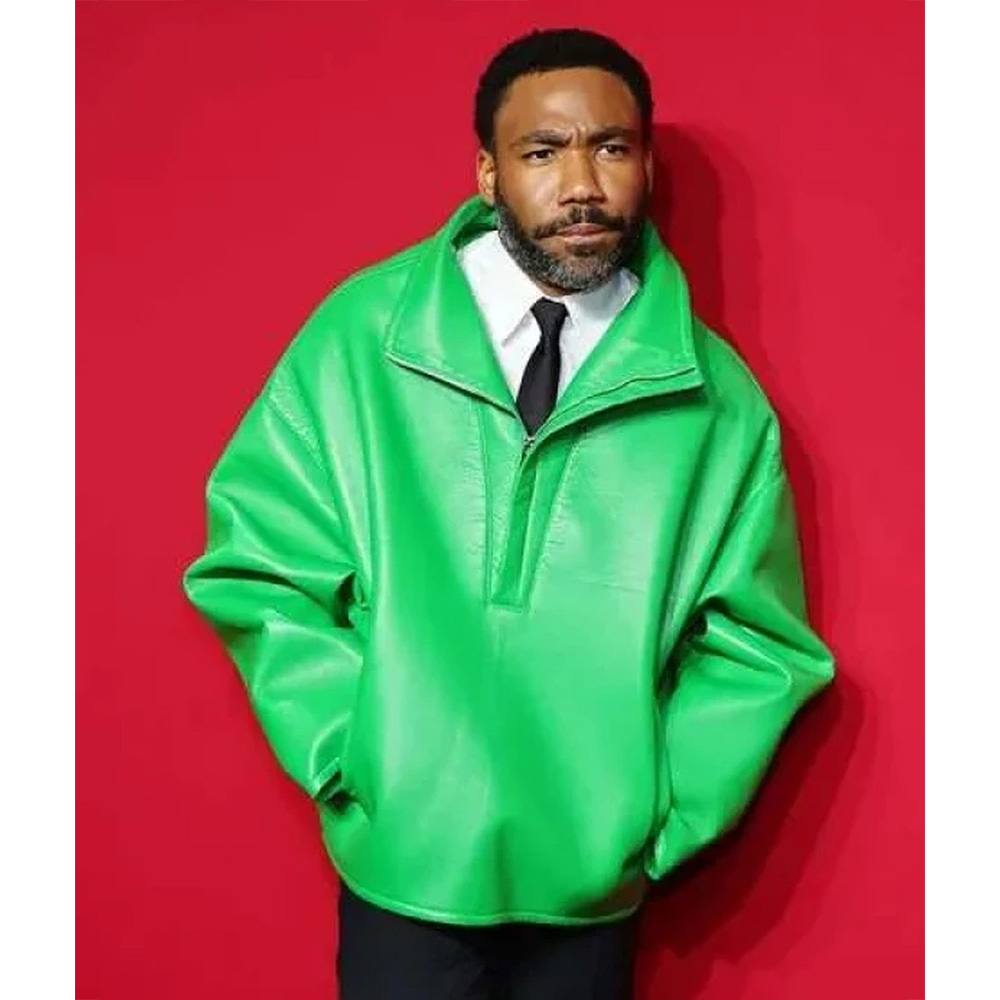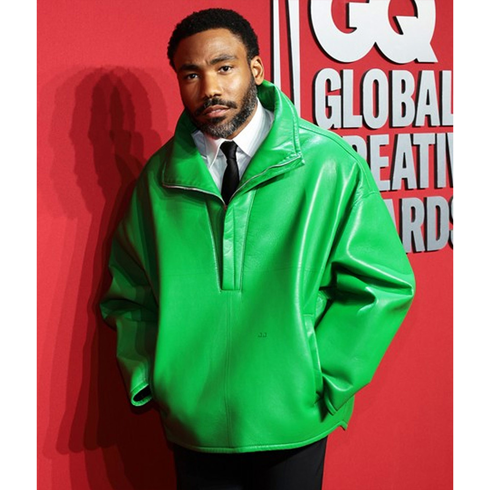 Global Creativity Awards Donald Glover Half Zip Leather Green Jacket