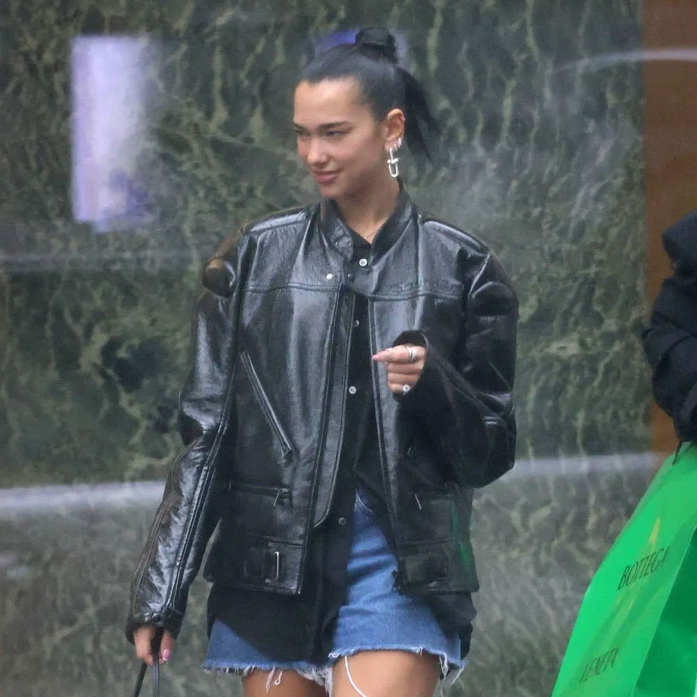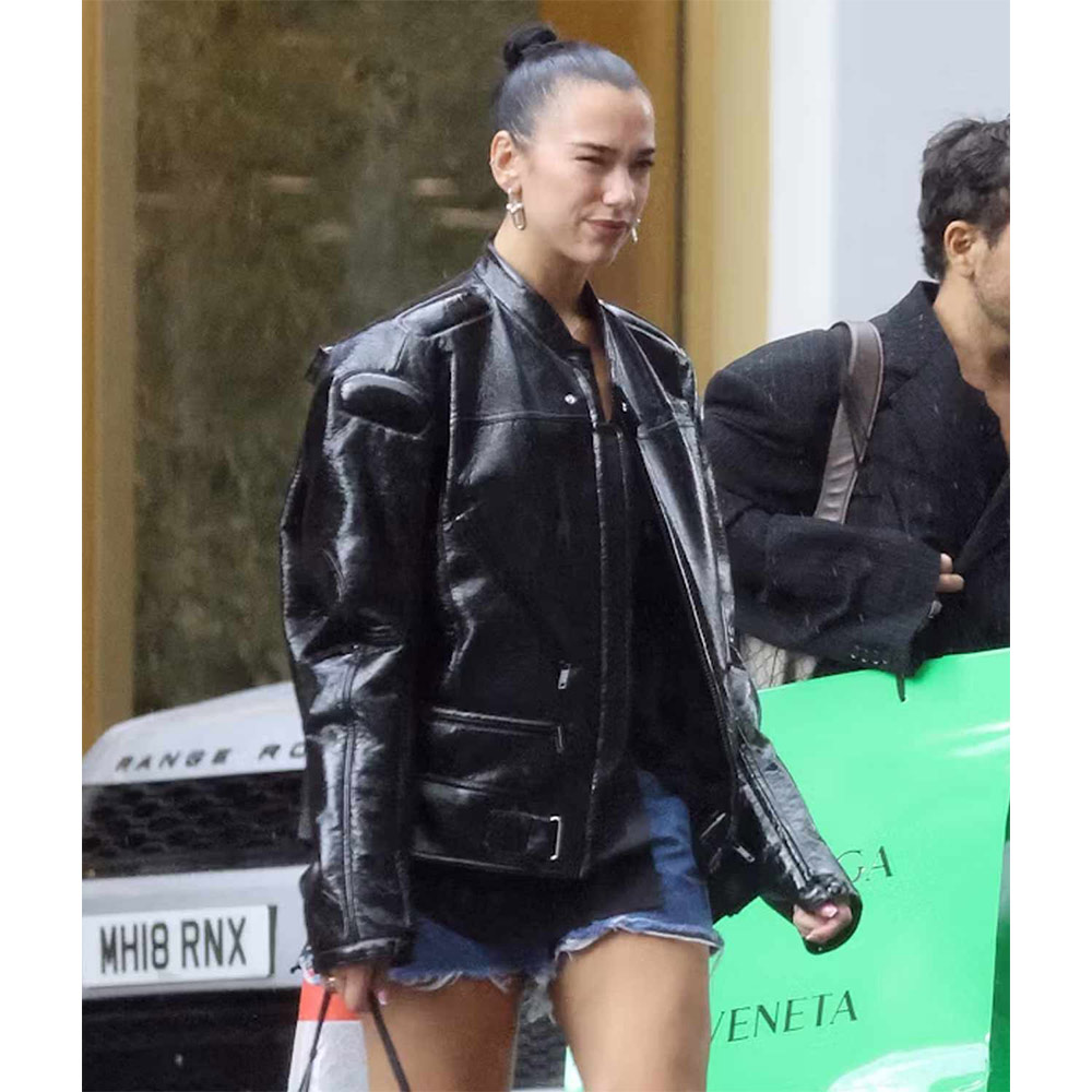 Unleash your inner rock star with the Dua Lipa Leather Jacket, a striking piece that captures the essence of the celebrated singers style. Constructed from high-quality genuine leather, this jacket pays homage to Dua Lipas signature look while offering a contemporary twist. The jackets classic black hue adds an air of mystery and sophistication to your ensemble, making it a versatile choice for various occasions. The shirt-style collar exudes a timeless charm, providing a perfect balance between casual and chic. The branded YKK zipper front closure not only enhances the jackets modern appeal but also ensures easy and convenient wear. The open hem cuffs add a touch of rebellion to the design. Designed for a snug and flattering fit, the Dua Lipa Leather Jacket features long sleeves that exude confidence and style. The soft viscose lining enhances comfort and ensures a smooth feel against your skin. Two outside pockets offer practicality without compromising the jackets sleek appearance. Our commitment to quality craftsmanship is evident in the fine stitching that adorns every detail of the Dua Lipa Biker Leather Jacket. Experience the fusion of fashion and durability.