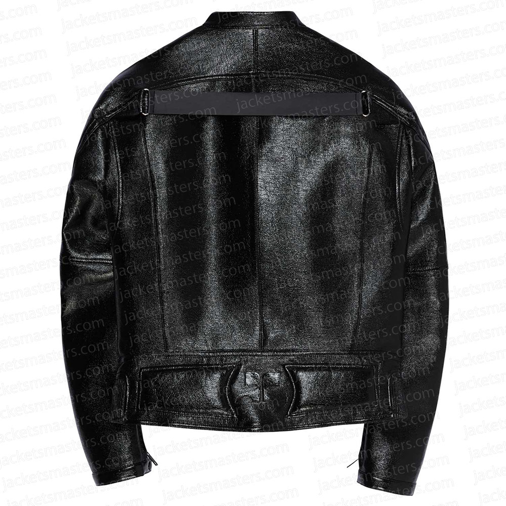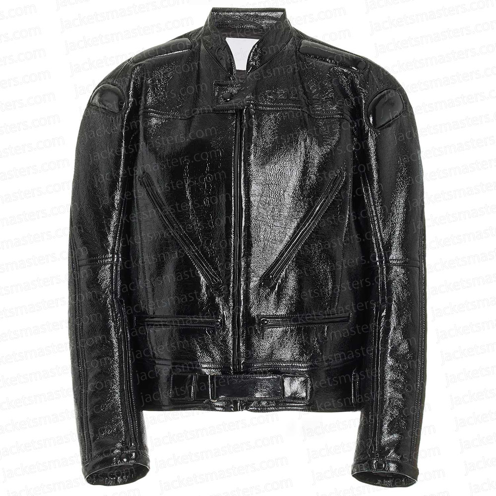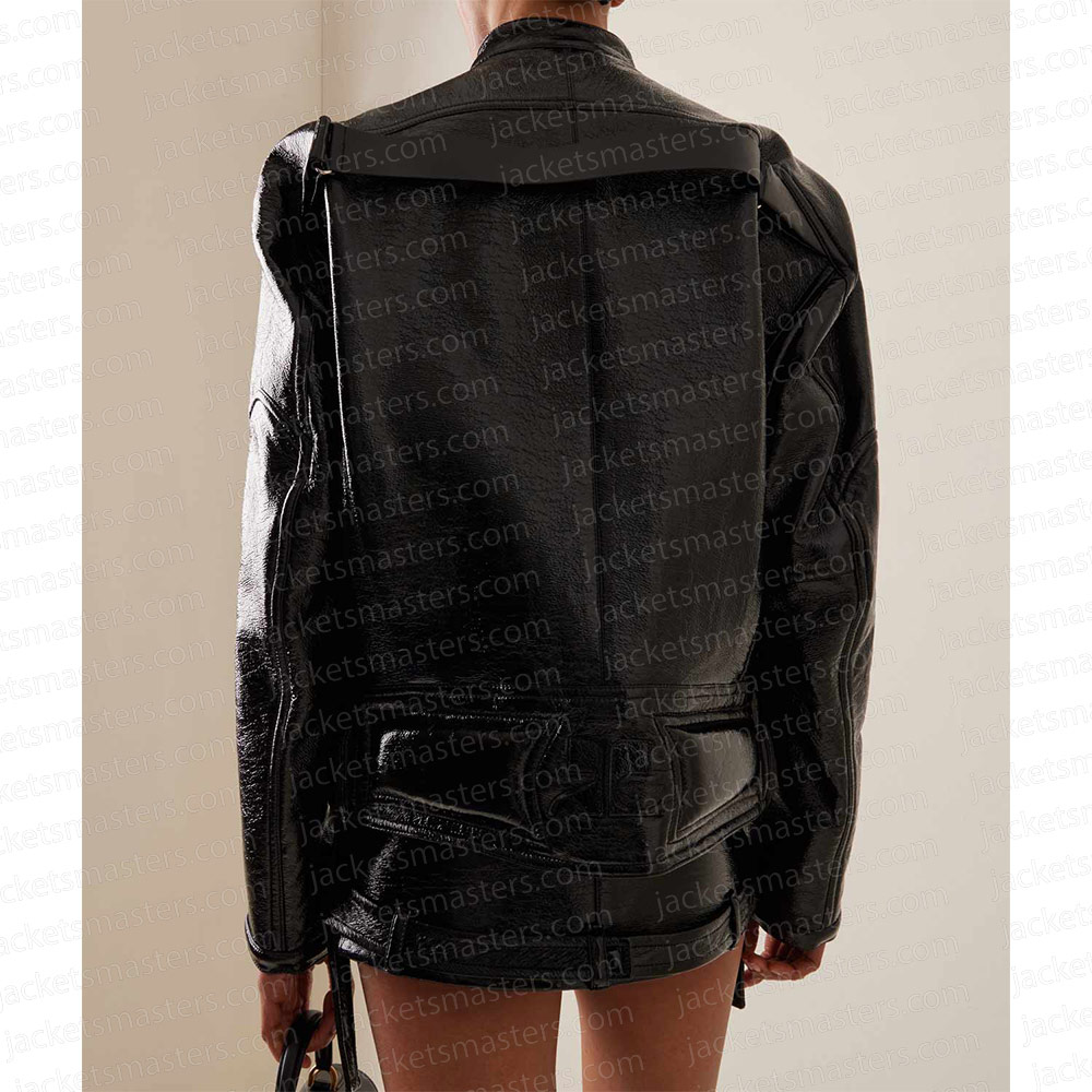 Dua Lipa Black Vinyl Leather Biker Jacket