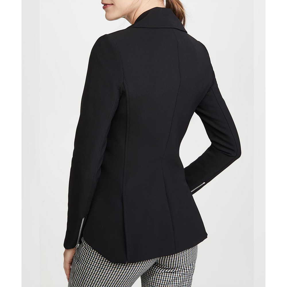 The Santa Clause Carol jacket is made up of high-quality of wool. The jacket is available in a mesmerizing black color, which gives it an innovative and striking look. The jacket has shirt style collar. The jacket has Branded YKK Zipper front closure. A soft inner viscose lining of the jacket keeps you warm and relaxed. The sleeves of Santa Clause Elizabeth Mitchell jacket are long with open hem cuffs. The jacket has two inner and two side pockets. The fine quality stitching of Santa Clause Carol jacket is comfortable and desirable to wear. The jacket is an ideal choice to wear in parties.